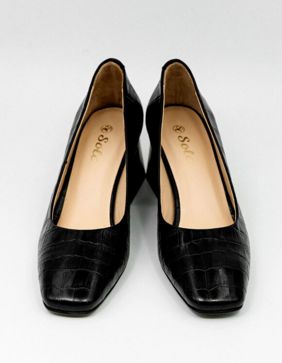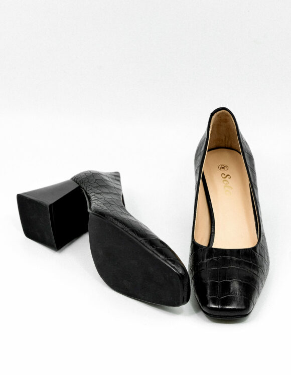 ТУФЛИ SOLLO Материал верха: кожа Внутренний материал: кожа с тиснением под рептилию Материал подошвы: термополиуретан Высота каблука: 6 см Сезон: демисезонные Цвет: черный Страна производства: Турция Артикул: 556