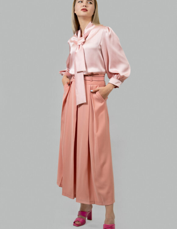 Юбка-брюки Стиль: кэжуал Состав: 56% polyester, 42% viscin, 2% elastan Длина: 91 см Сезон: Весна-лето Цвет: пудра Узор: однотонный Застежка: молния, ремень Страна производства: Турция Артикул: 11302