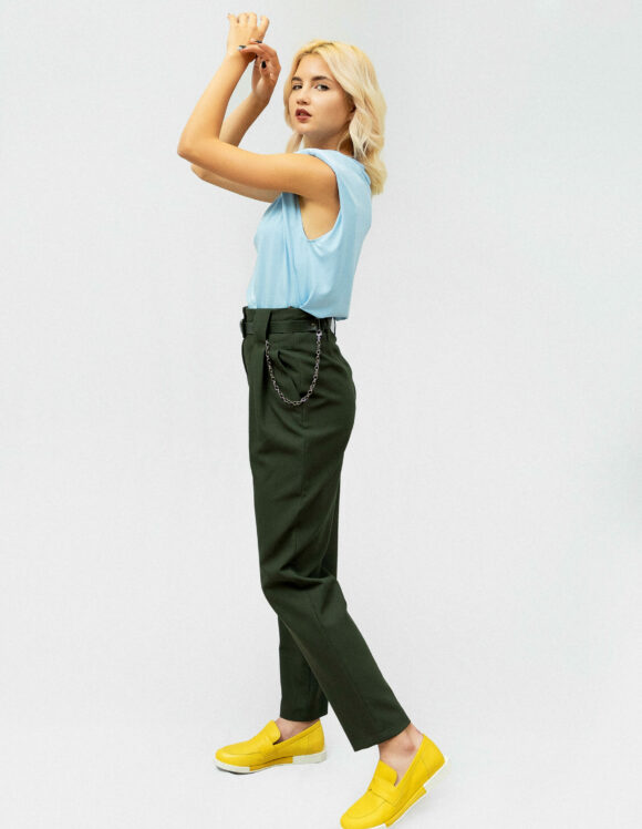 Брюки: Бренд MERCUR Стиль: Кэжуал Состав: 70% Polyamid, 26% Viscoze,4% Elastan Размер товара на модели: 36 EUR Параметры модели: 85-62-89 Рост модели на фото: 170 Длина брюк : 100 см Сезон: Демисезонный Цвет: Хаки Узор: Однотонный Гарантийный период: не установлен Страна производства: Турция Застежка: На молнии с пуговицей,сбоку цепь