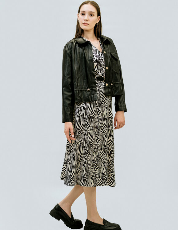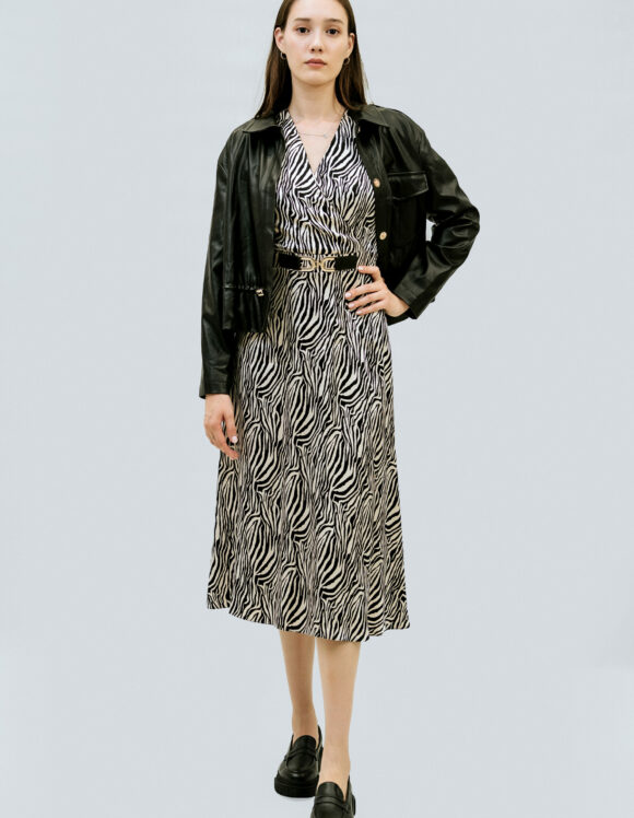 Костюм-двойка PHARDI Стиль: Кэжуал Состав: 47% polyester, 23% viscose, 30% ryn, 3% lycra Длина бомбера: 74 см Длина рукавов: 55 см Длина платья: 120 см Длина рукавов платья: 45 см Сезон: демисезонный Цвет: черный-бежевый Узор: на платье анималистичный принт Застежка: платье на молнии, бомбер на кнопках Страна производства: Турция Артикул: