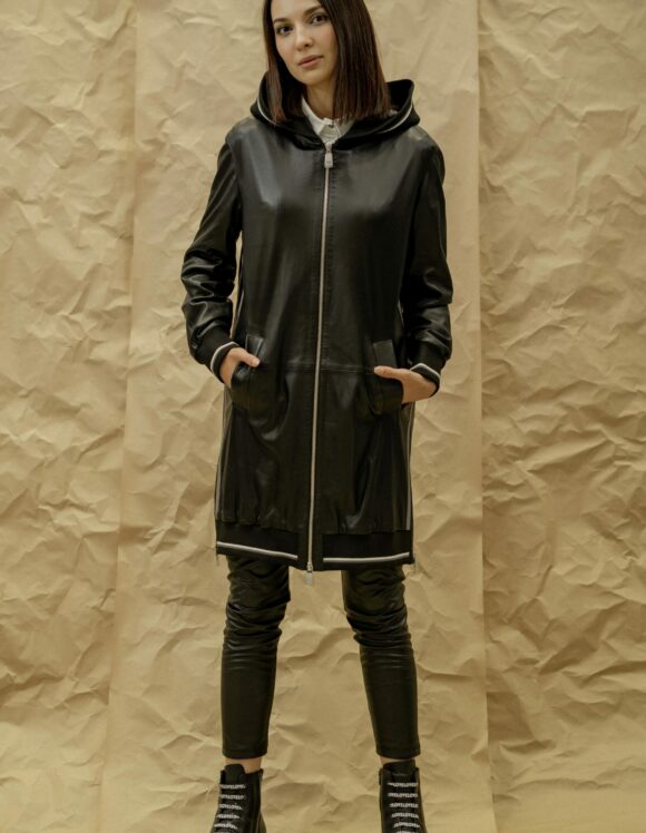 Тренч ADAMO Состав: овечья кожа Материал подклада: полиэстер Длина: 92 см Длина спущенного рукава: 63 см Сезон: осень-весна Цвет: черный Страна производства: Турция Застежка: металлическая молния