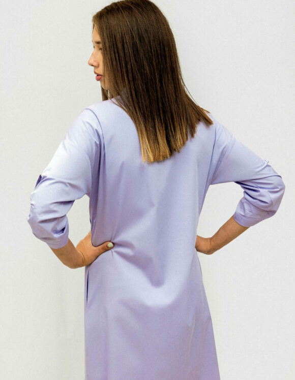Платье: Бренд PHARDI Стиль:Кэжуал Состав: 100% Cotton Размер товара на модели: 36 EUR Параметры модели: 85-62-89 Рост модели на фото: 170 Подходит на рост: 165-175 Длина: 93 см Размер рукав : приспущенный регулируемый рукав 43 см Сезон: Весна-лето Цвет: Лавандовый Узор: Однотонный Гарантийный период: не установлен Страна производства: Турция Застежка: