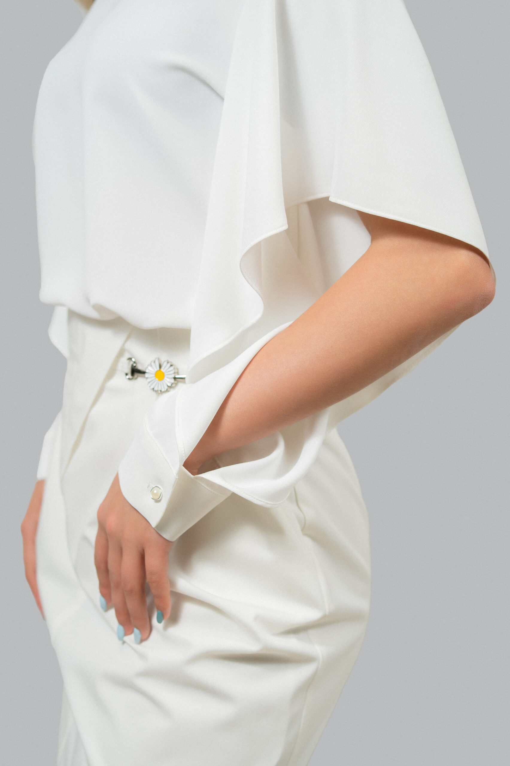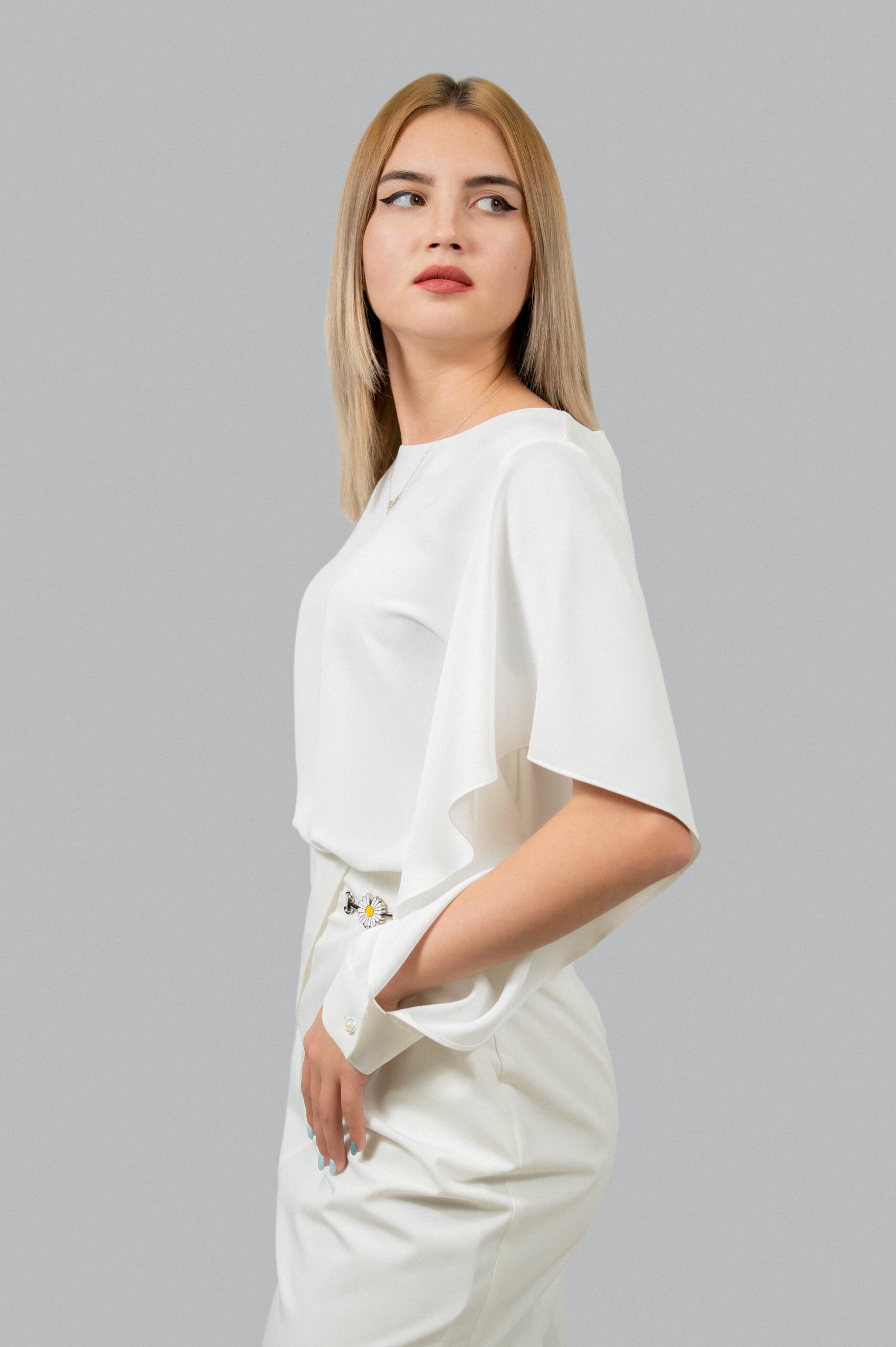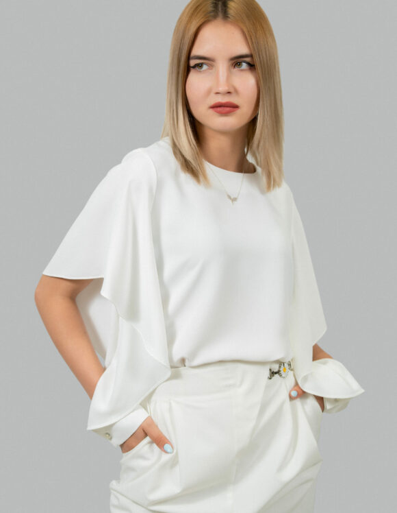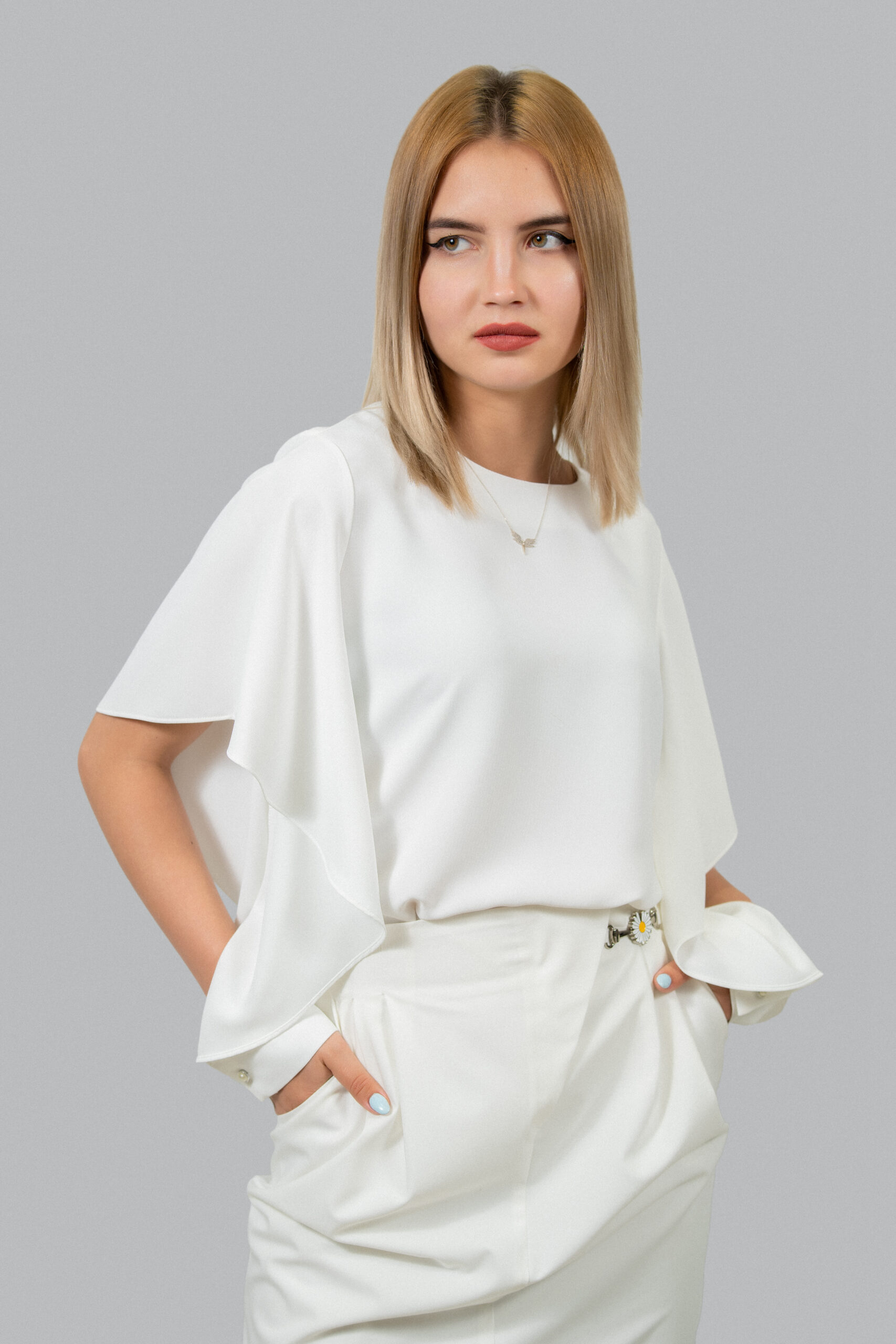 Блузка MODALINDA Стиль: Lady fit, кэжуал Состав: Длина: 62 см Длина рукава: 55 см Сезон: весна-лето Цвет: белый Узор: нет Застежка: пуговица Страна производства: Турция Артикул: 13520