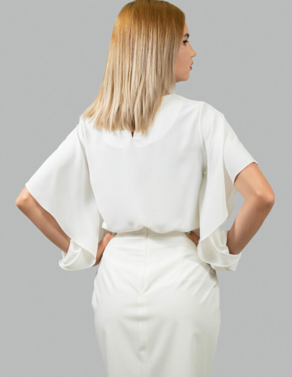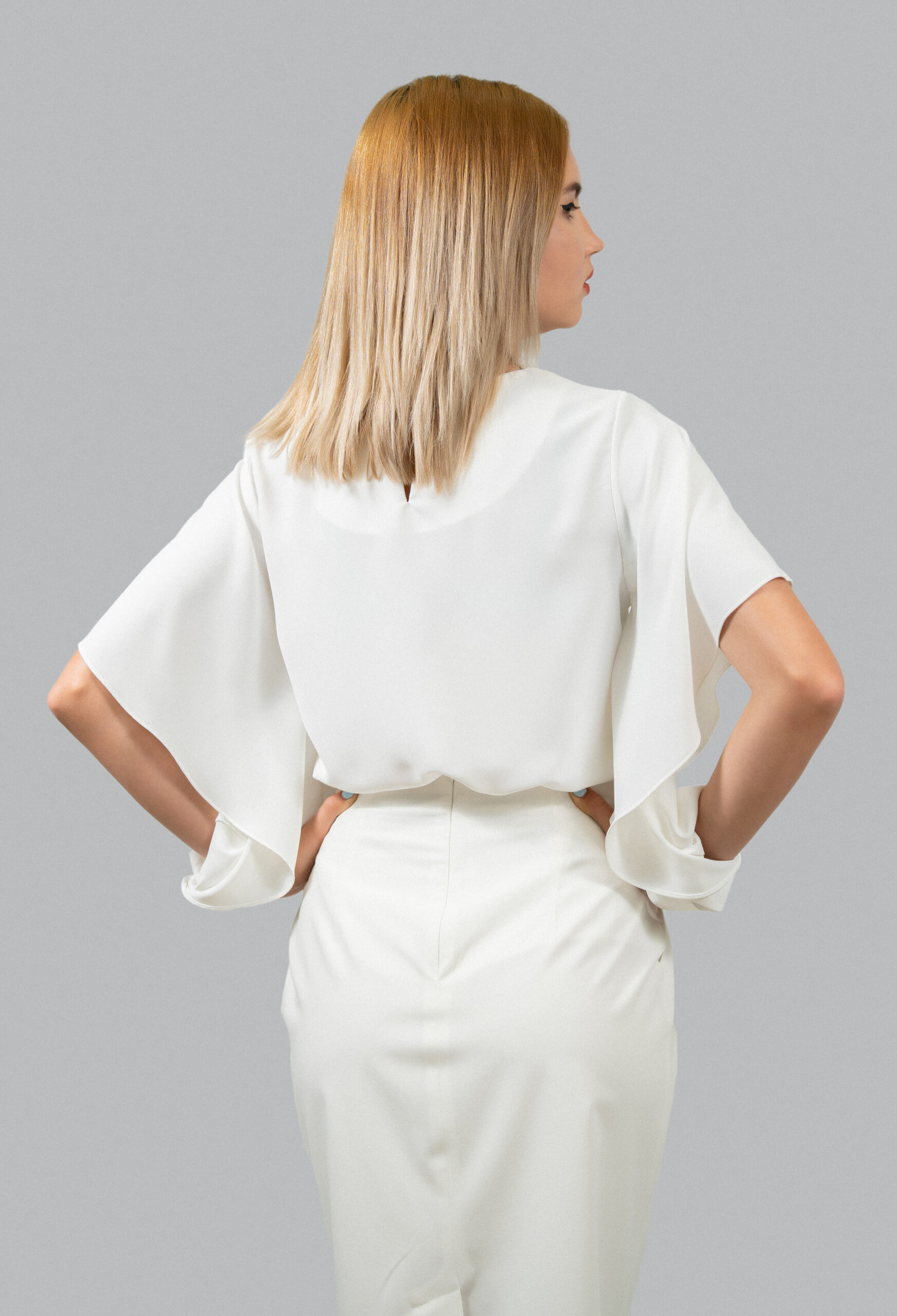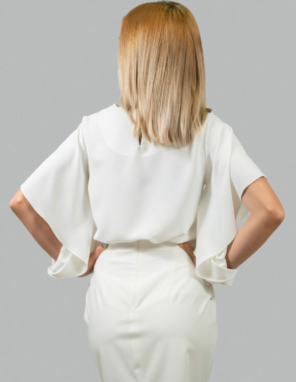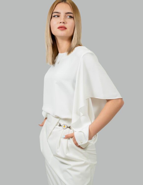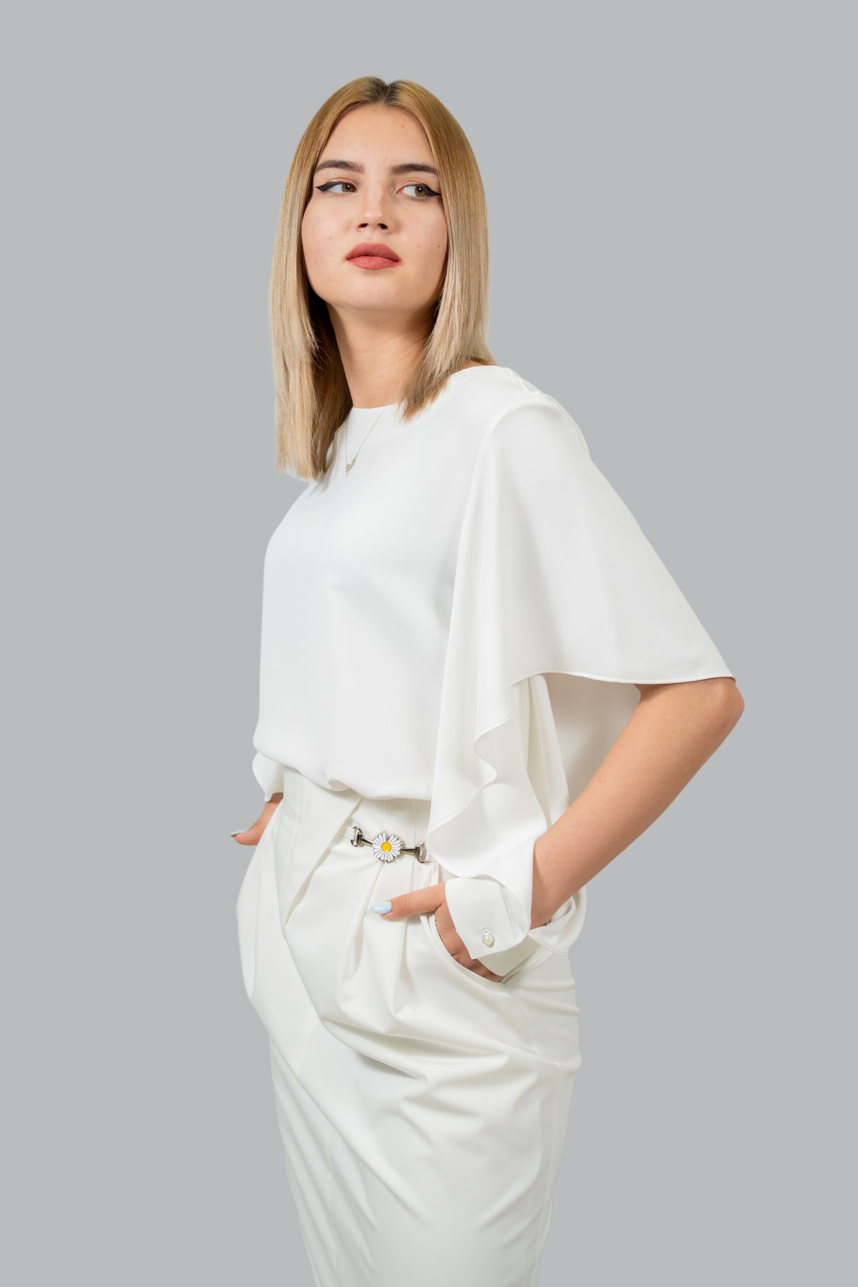 Блузка MODALINDA Стиль: Lady fit, кэжуал Состав: Длина: 62 см Длина рукава: 55 см Сезон: весна-лето Цвет: белый Узор: нет Застежка: пуговица Страна производства: Турция Артикул: 13520