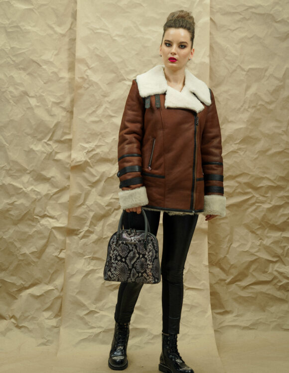 Дубленка MANETTI Состав верха: овчина Материал подклада: овечья шерсть Длина: 71 см Длина рукава: 67 см Сезон: осень-зима Цвет: коричневый Страна производства: Турция Застежка: металлическая молния