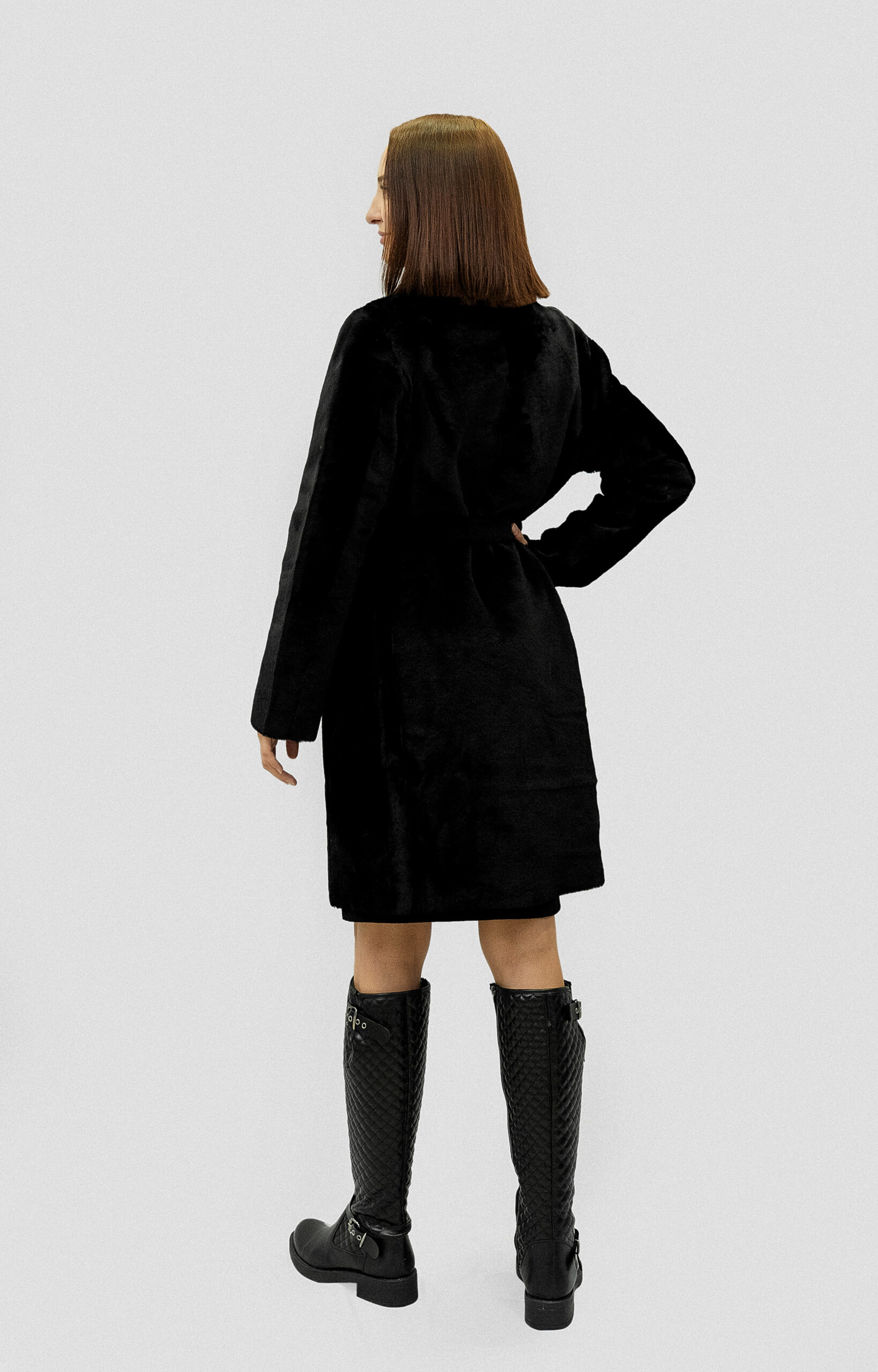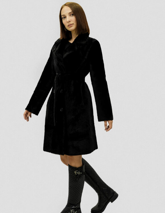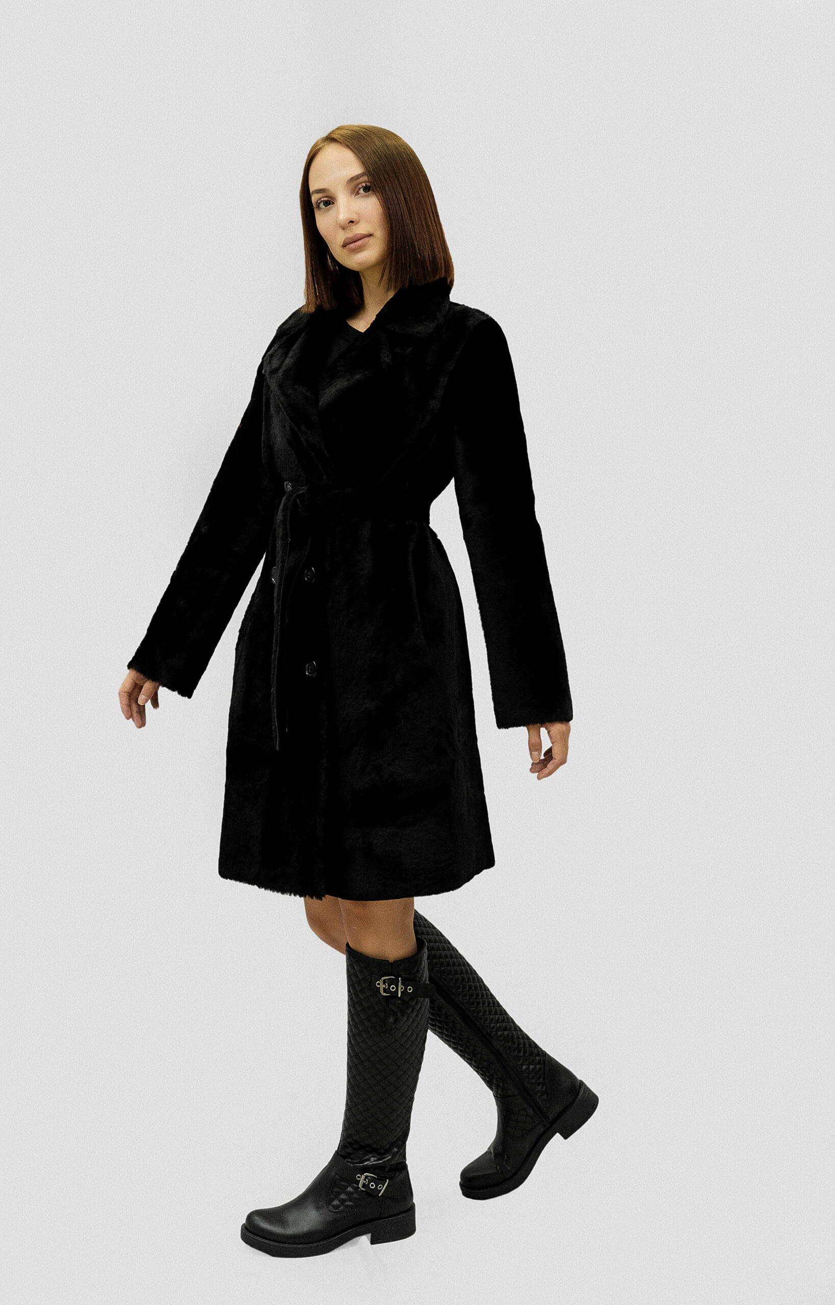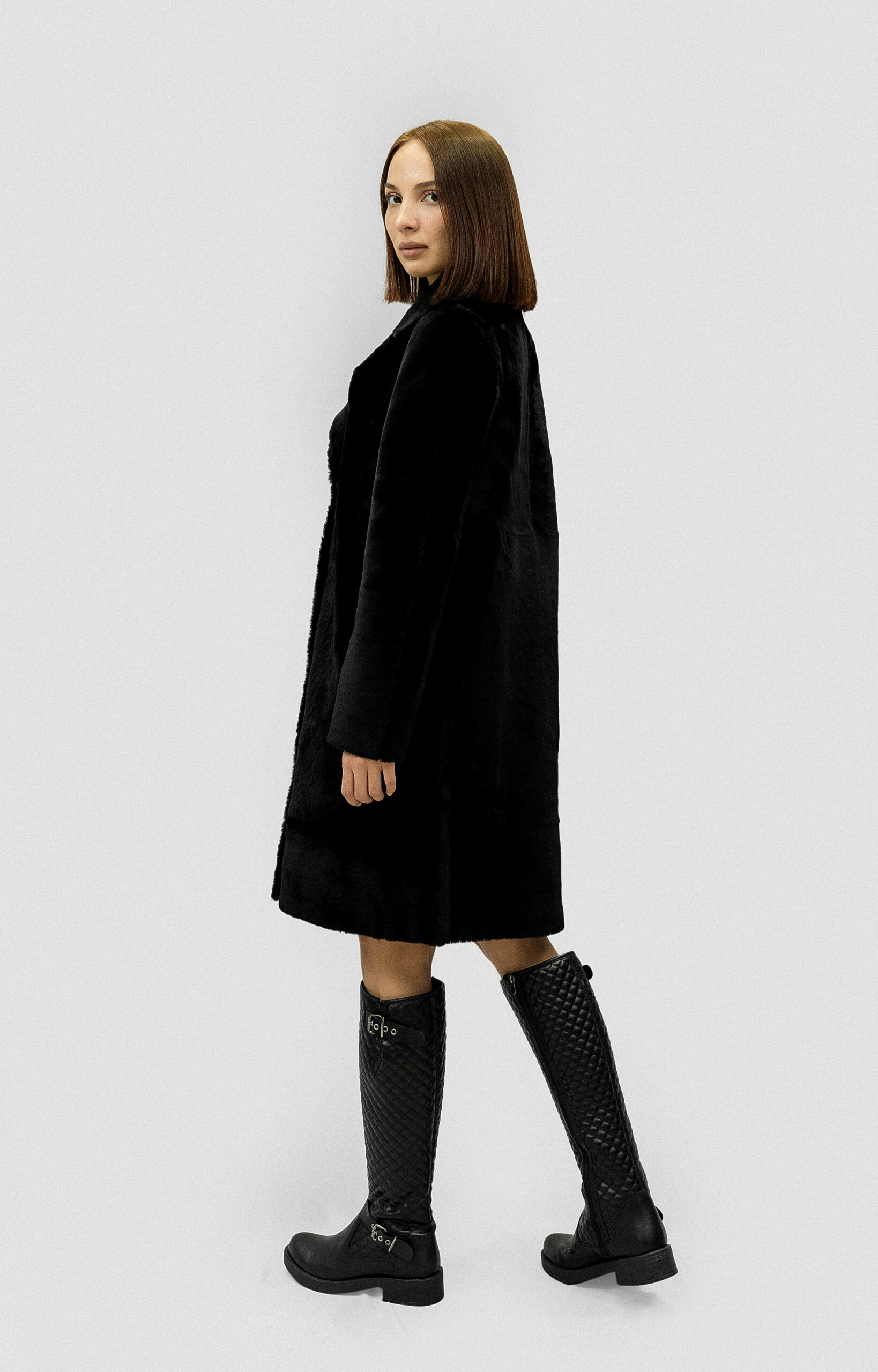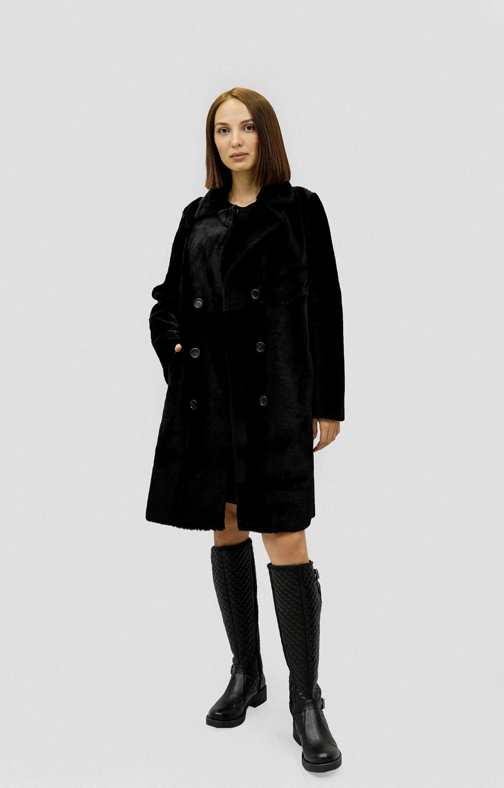 Двусторонняя дубленка MANETTI Состав: 100% овечина Длина изделия: 92 см Длина рукава от горловины: 60 см Сезон: осень-зима Цвет: черный Страна производства: Турция Застежка: пуговицы Артикул: 526