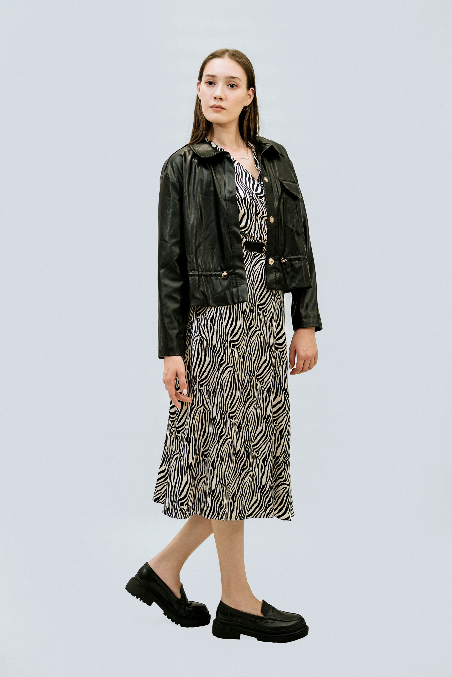 Костюм-двойка PHARDI Стиль: Кэжуал Состав: 47% polyester, 23% viscose, 30% ryn, 3% lycra Длина бомбера: 74 см Длина рукавов: 55 см Длина платья: 120 см Длина рукавов платья: 45 см Сезон: демисезонный Цвет: черный-бежевый Узор: на платье анималистичный принт Застежка: платье на молнии, бомбер на кнопках Страна производства: Турция Артикул: 272986570