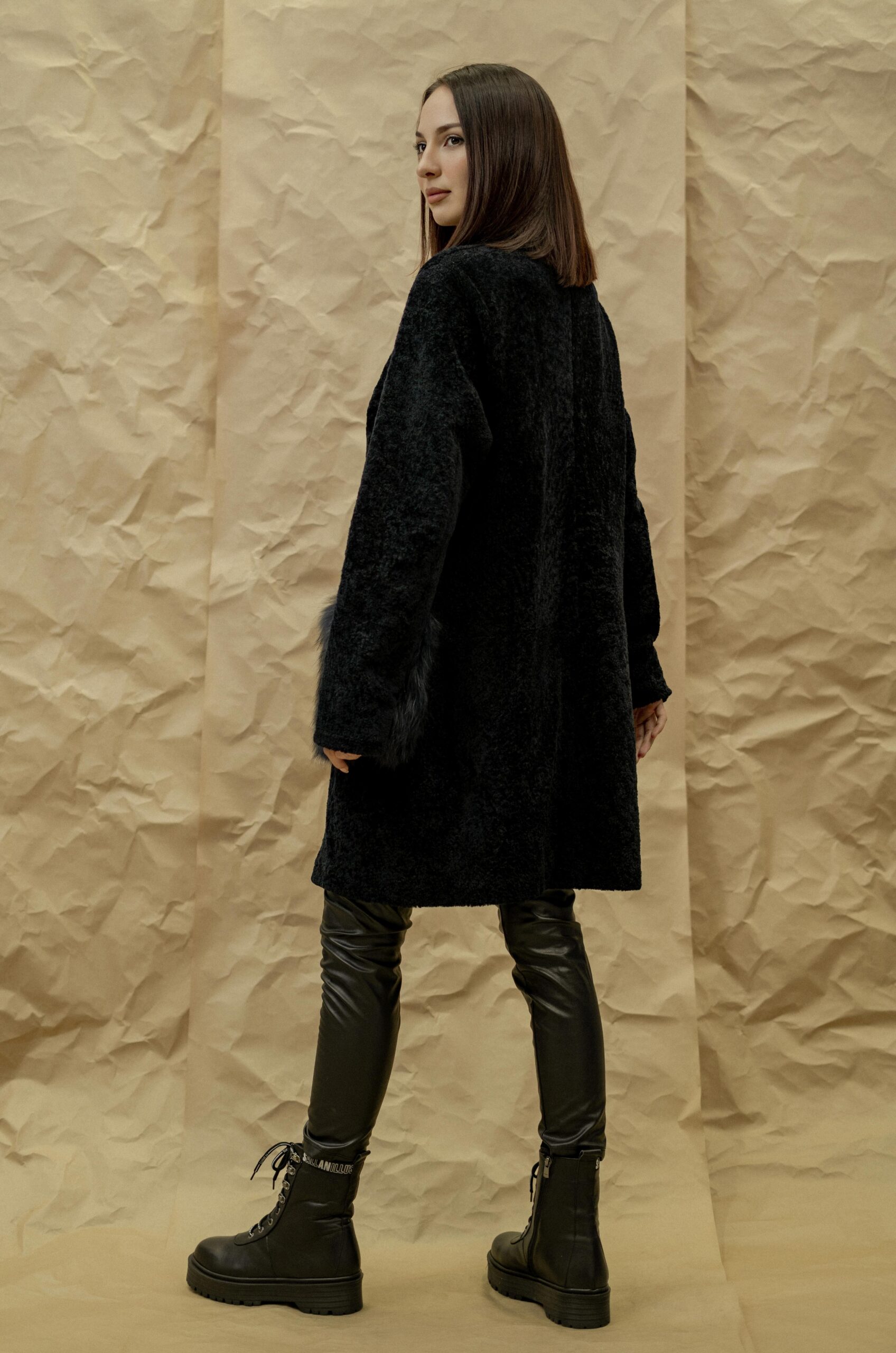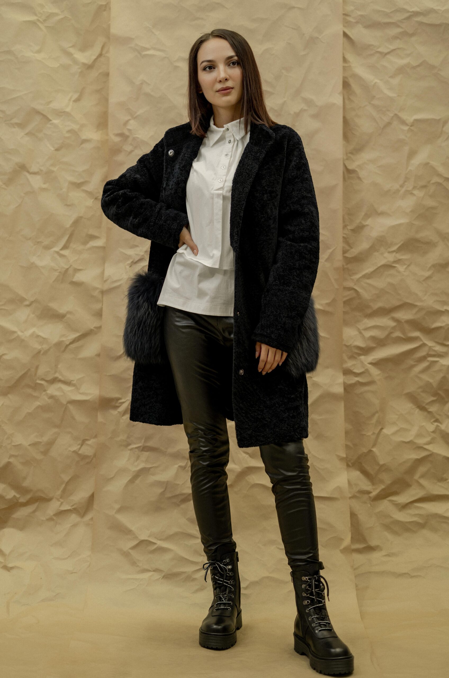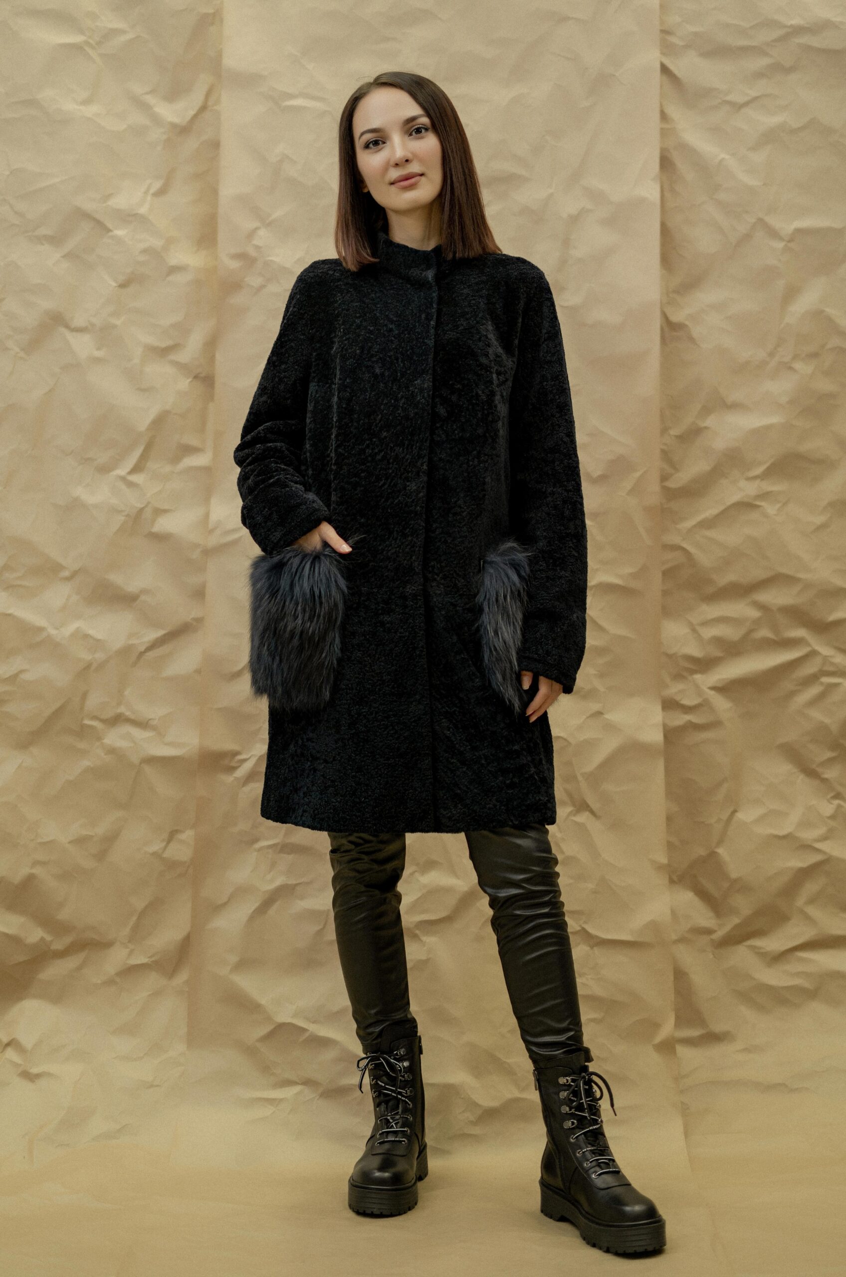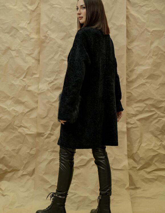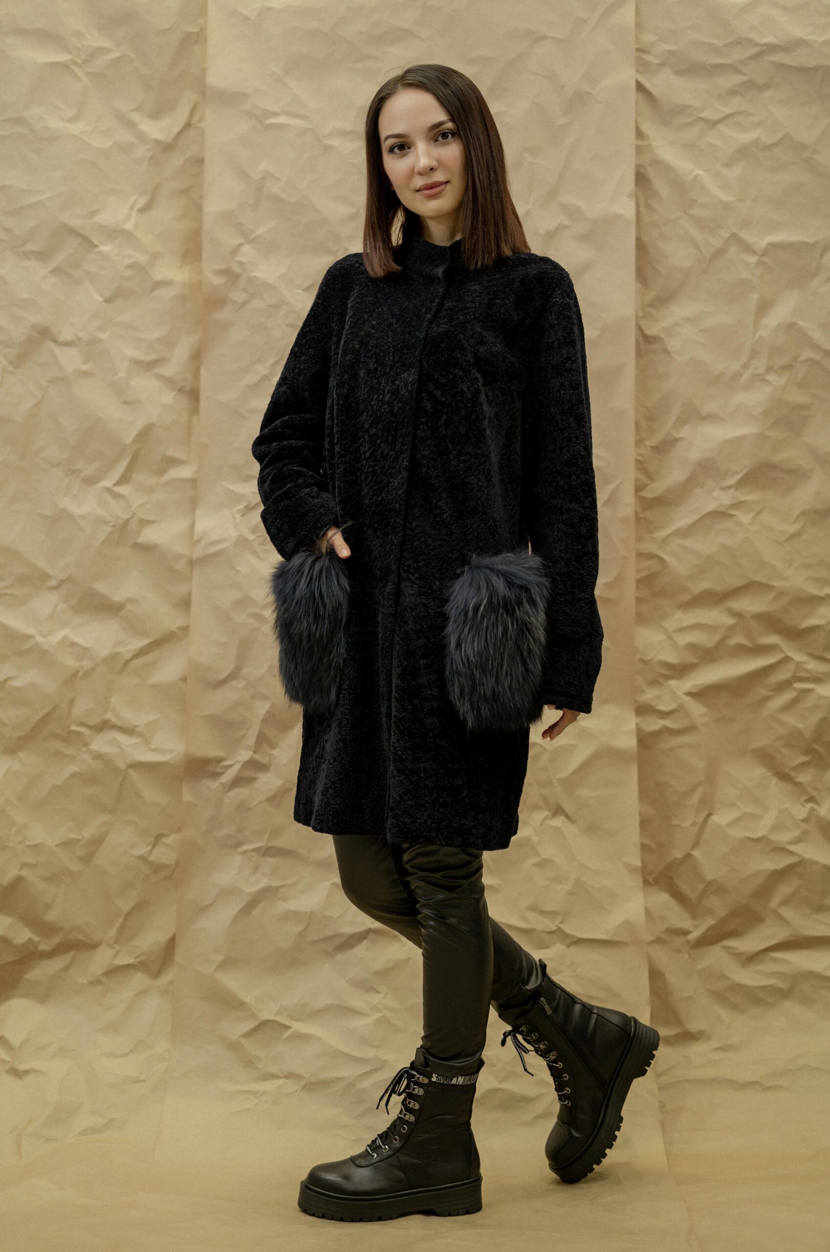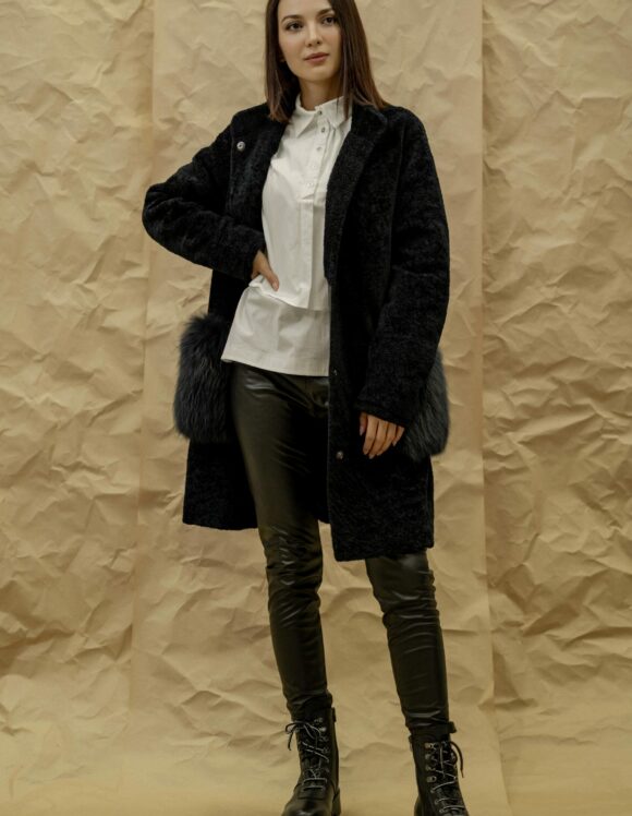 Шуба GUN MOD Состав верха: овчина Материал подклада: полиэстер Мех отделки: степная лисица Длина: 94 см Длина рукава от горловины: 82 см Сезон: осень-зима Цвет: темно-синий Страна производства: Турция Застежка: металлические кнопки