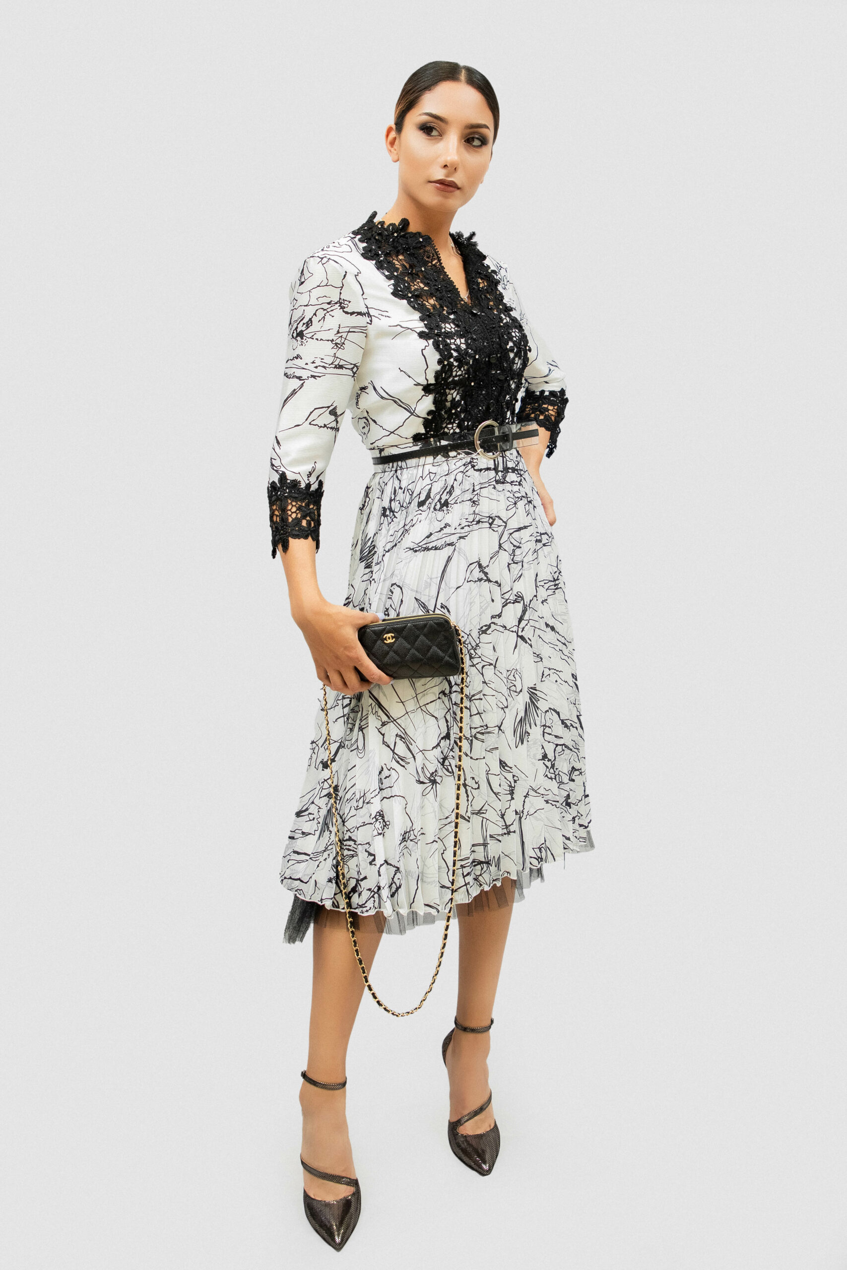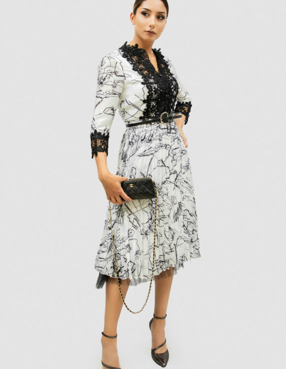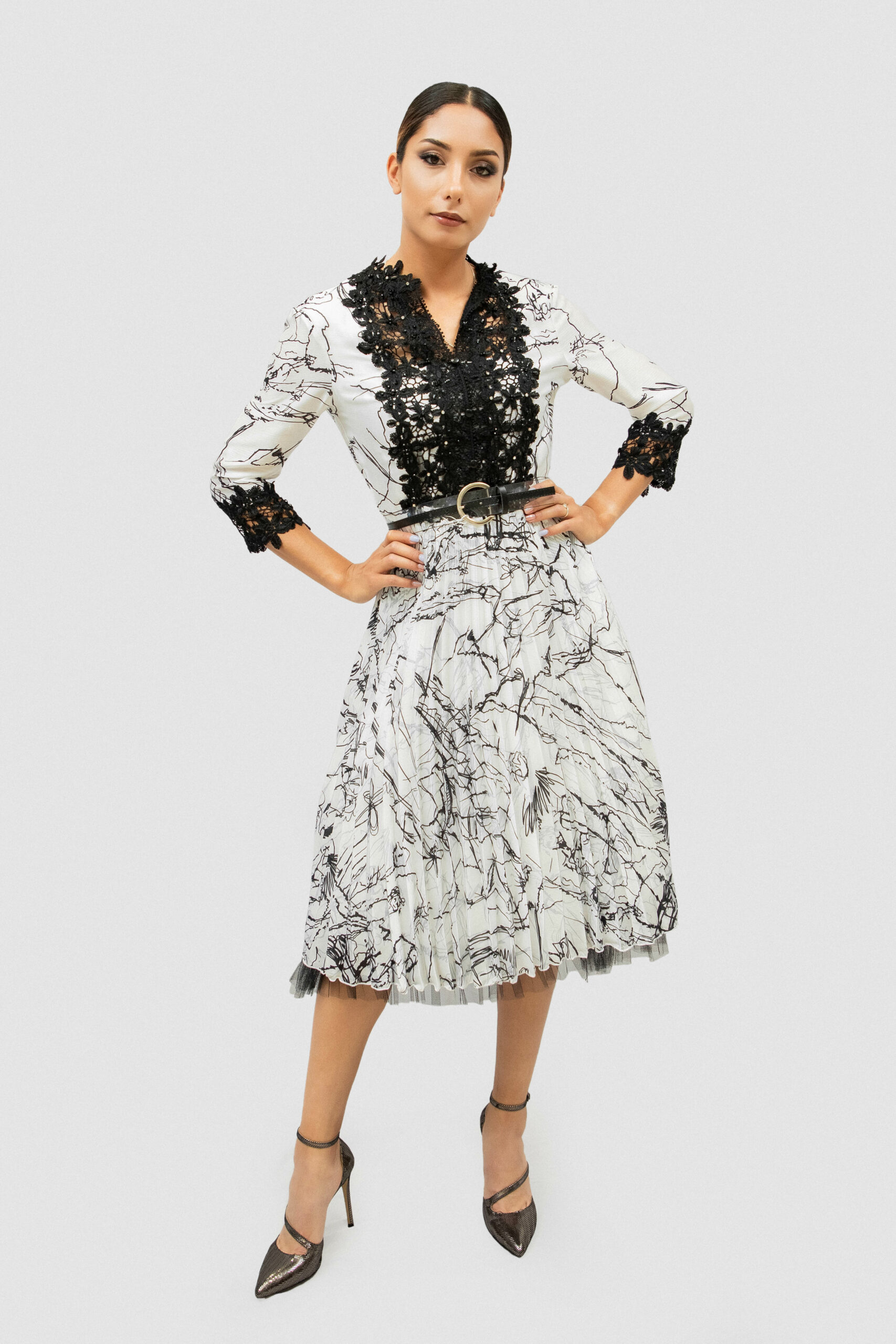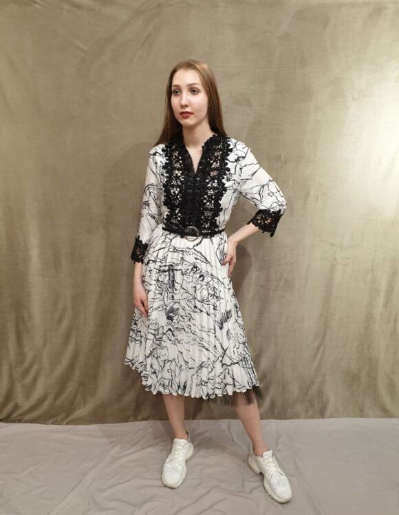 Платье: Бренд PHARDI Стиль: Кэжуал Состав: 47% Polyester 23% Viscose 30% RYN Размер товара на модели: 36 EUR Параметры модели: 85-62-89 Рост модели на фото: 170 Подходит на рост: 165-175 Длина: 118 см Длина рукава: 51 см Сезон: Весна-лето Цвет: Черно-белый Узор: Хаотичные надписи Гарантийный период: не установлен Страна производства: Турция Застежка: Сбоку молния