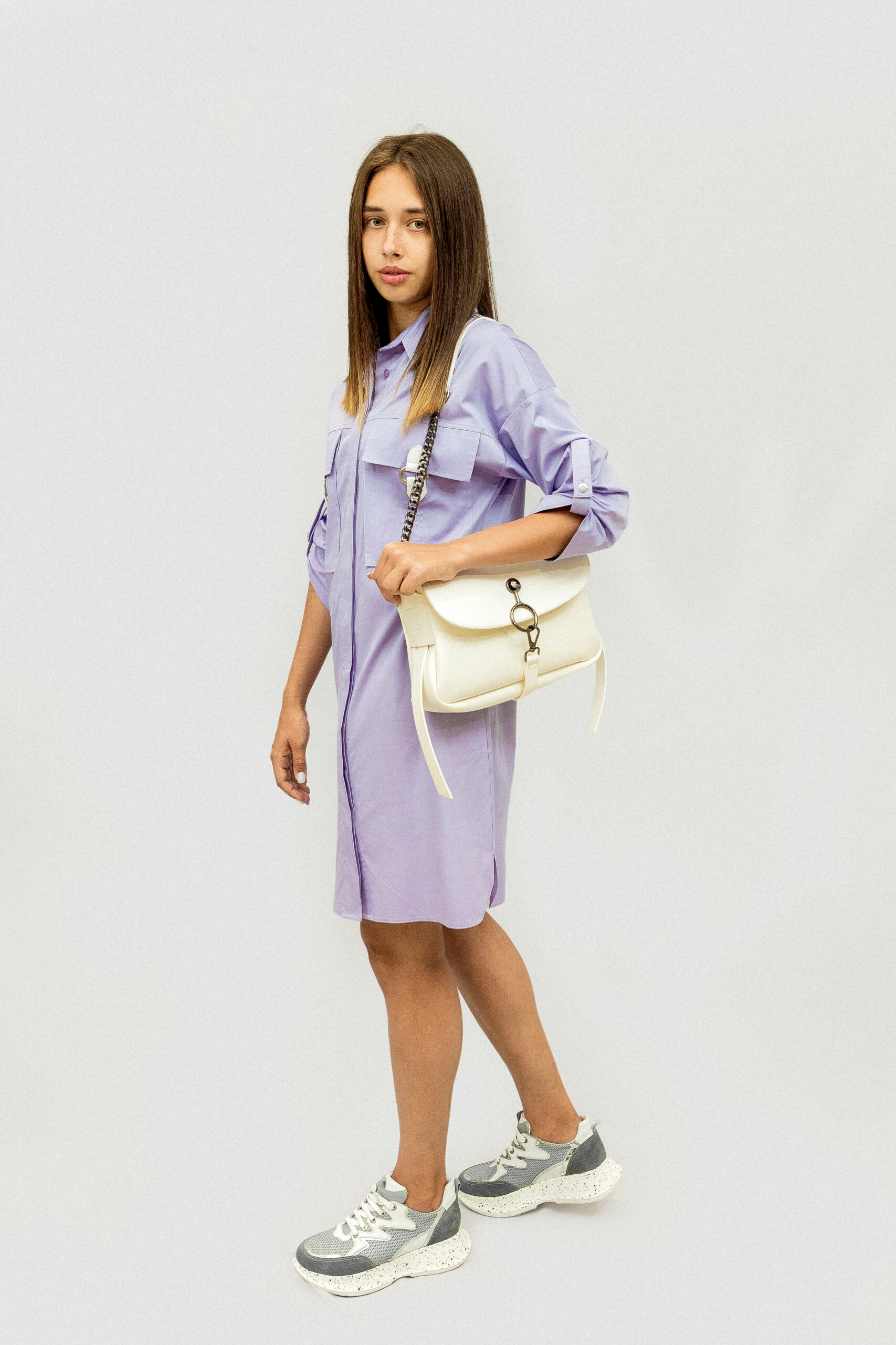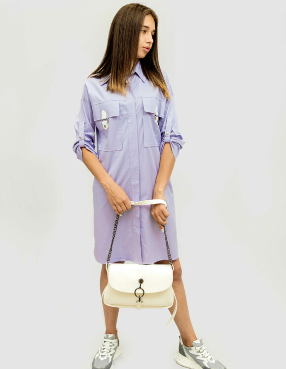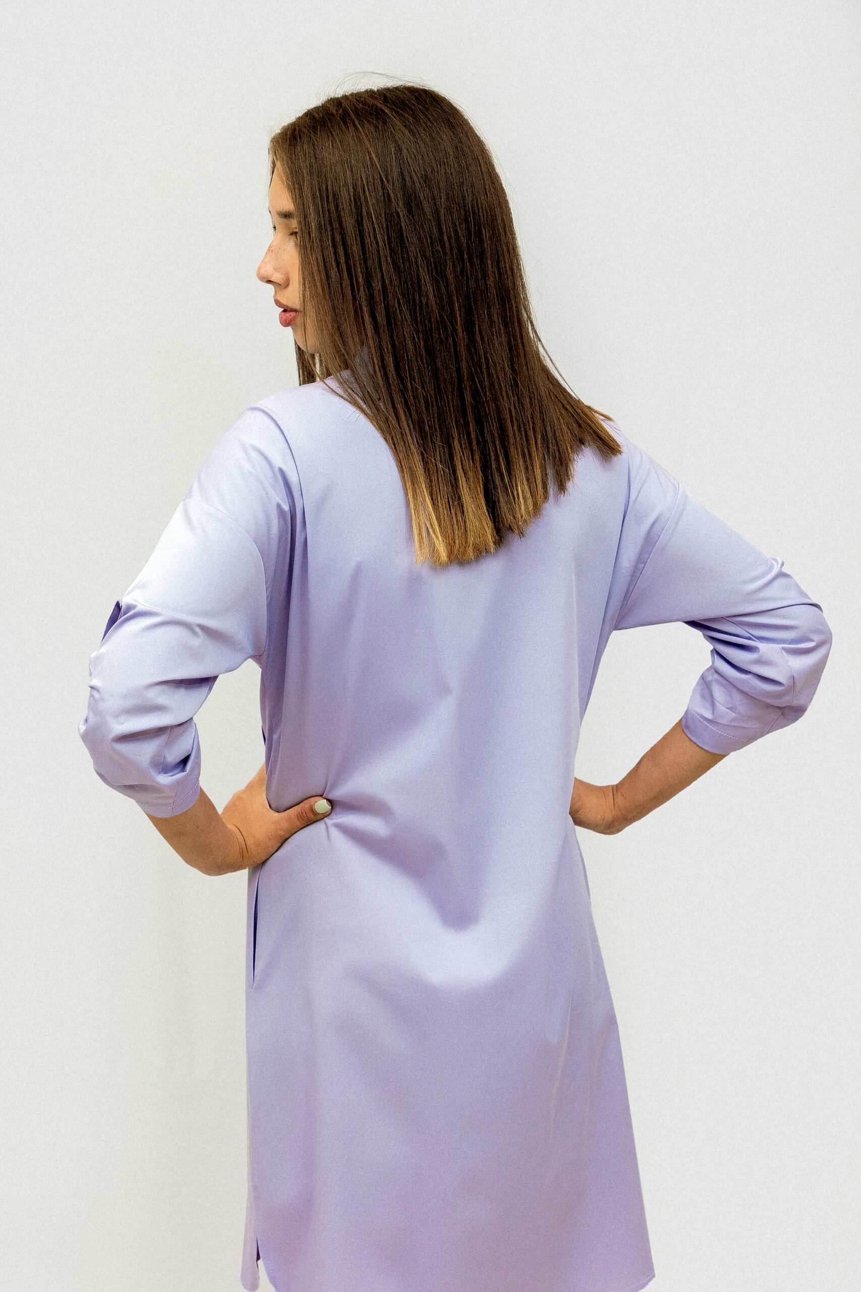 Платье: Бренд PHARDI Стиль:Кэжуал Состав: 100% Cotton Размер товара на модели: 36 EUR Параметры модели: 85-62-89 Рост модели на фото: 170 Подходит на рост: 165-175 Длина: 93 см Размер рукав : приспущенный регулируемый рукав 43 см Сезон: Весна-лето Цвет: Лавандовый Узор: Однотонный Гарантийный период: не установлен Страна производства: Турция Застежка: Спереди на пуговицах