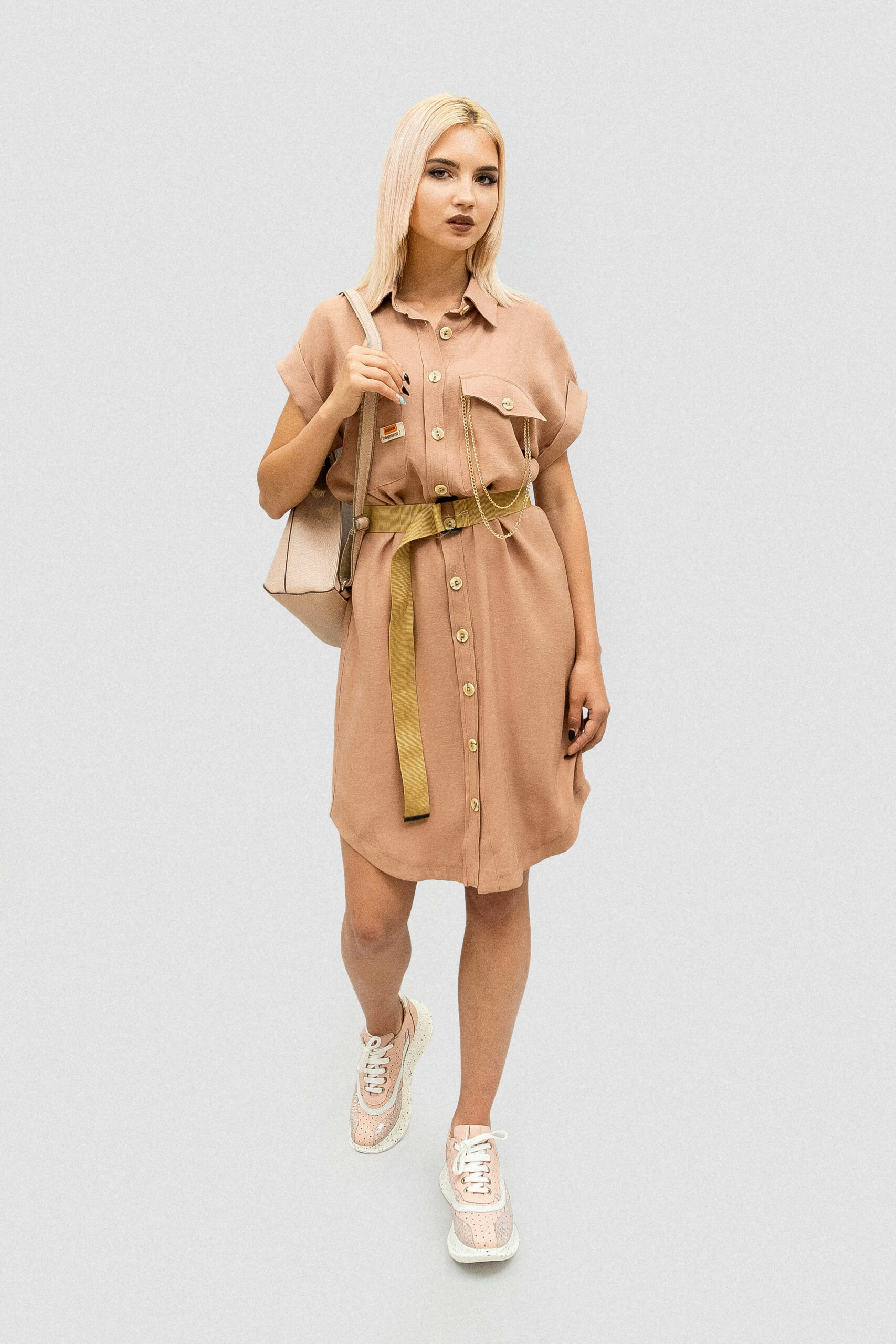 Платье: Бренд PHARDI Стиль: Кэжуал Состав: 80% Polyester 15% Viscose 5% Lycra Размер товара на модели: 36 EUR Параметры модели: 85-62-89 Рост модели на фото: 170 Подходит на рост: 165-175 Длина: 98 см Длина рукава: спущенный рукав: 12 см Сезон: Весна-лето Цвет: Темно-бежевый Узор: Однотонный Гарантийный период: не установлен Страна производства: Турция Застежка: Спереди на пуговицах