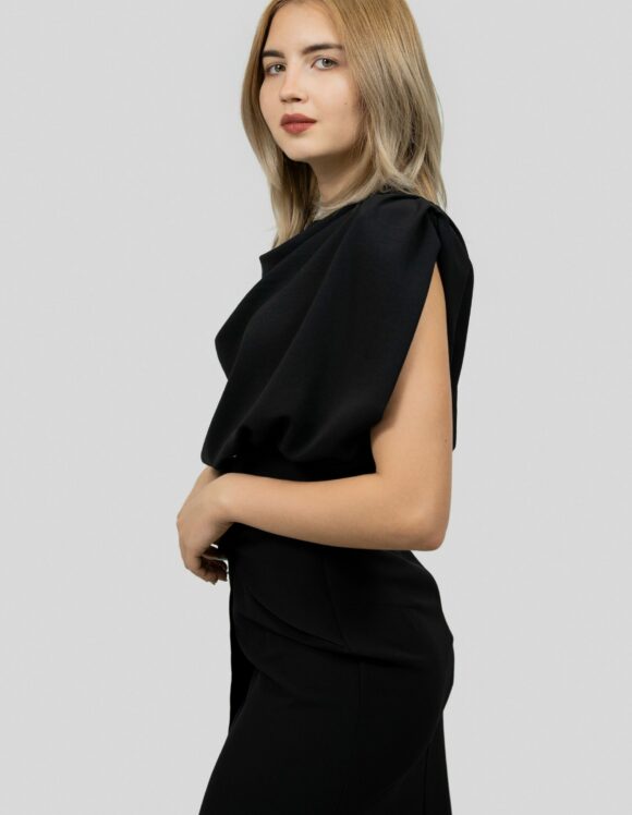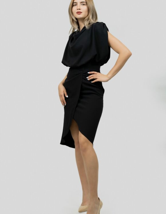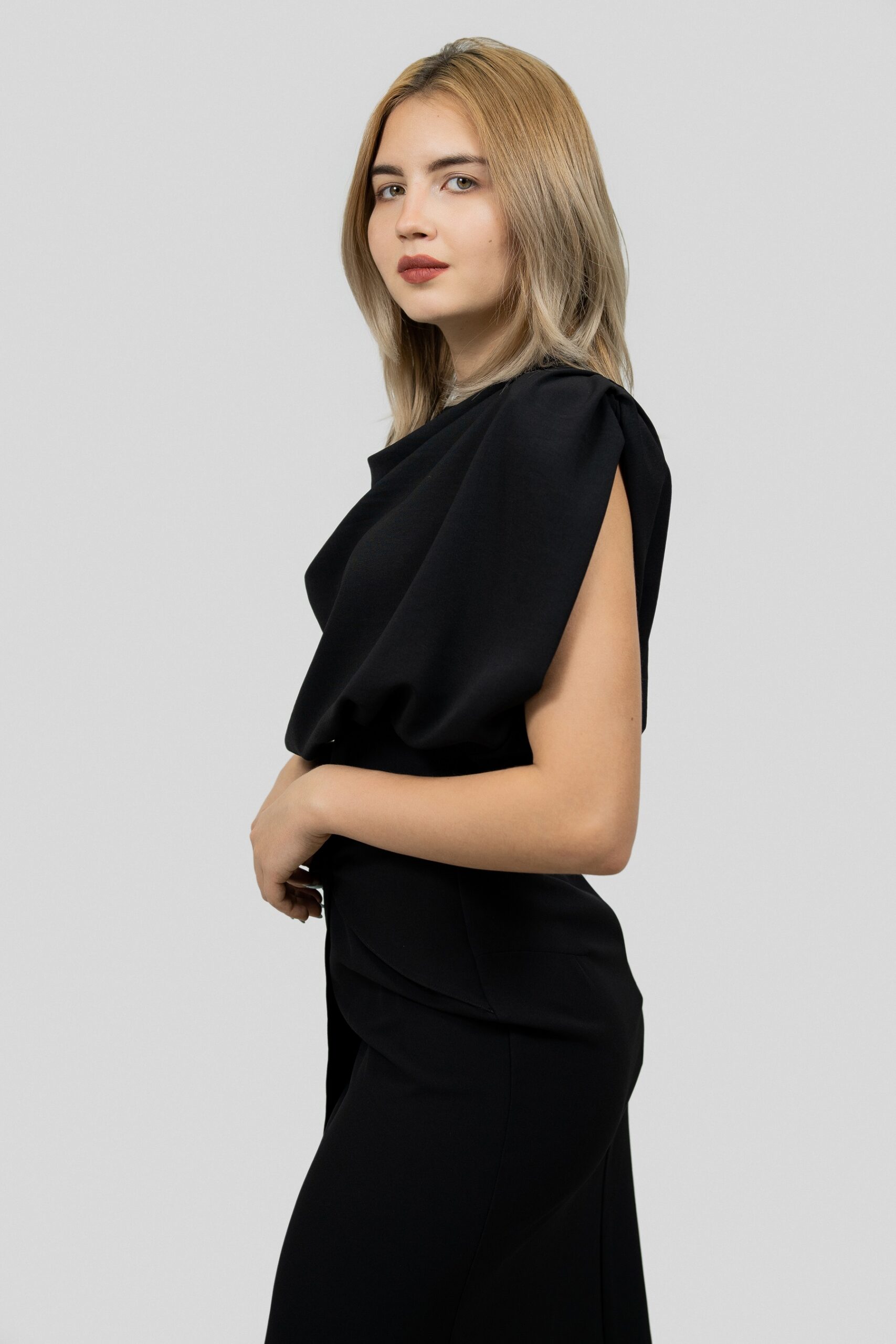 Платье SARA Стиль: вечерний Состав: 50% viscose, 50% polyester Длина сзади: 109 см Длина спереди: 84 ед Сезон: весна-лето Цвет: черный Узор: однотонный Застежка: молния и пуговицы Страна производства: Турция Артикул: 1505