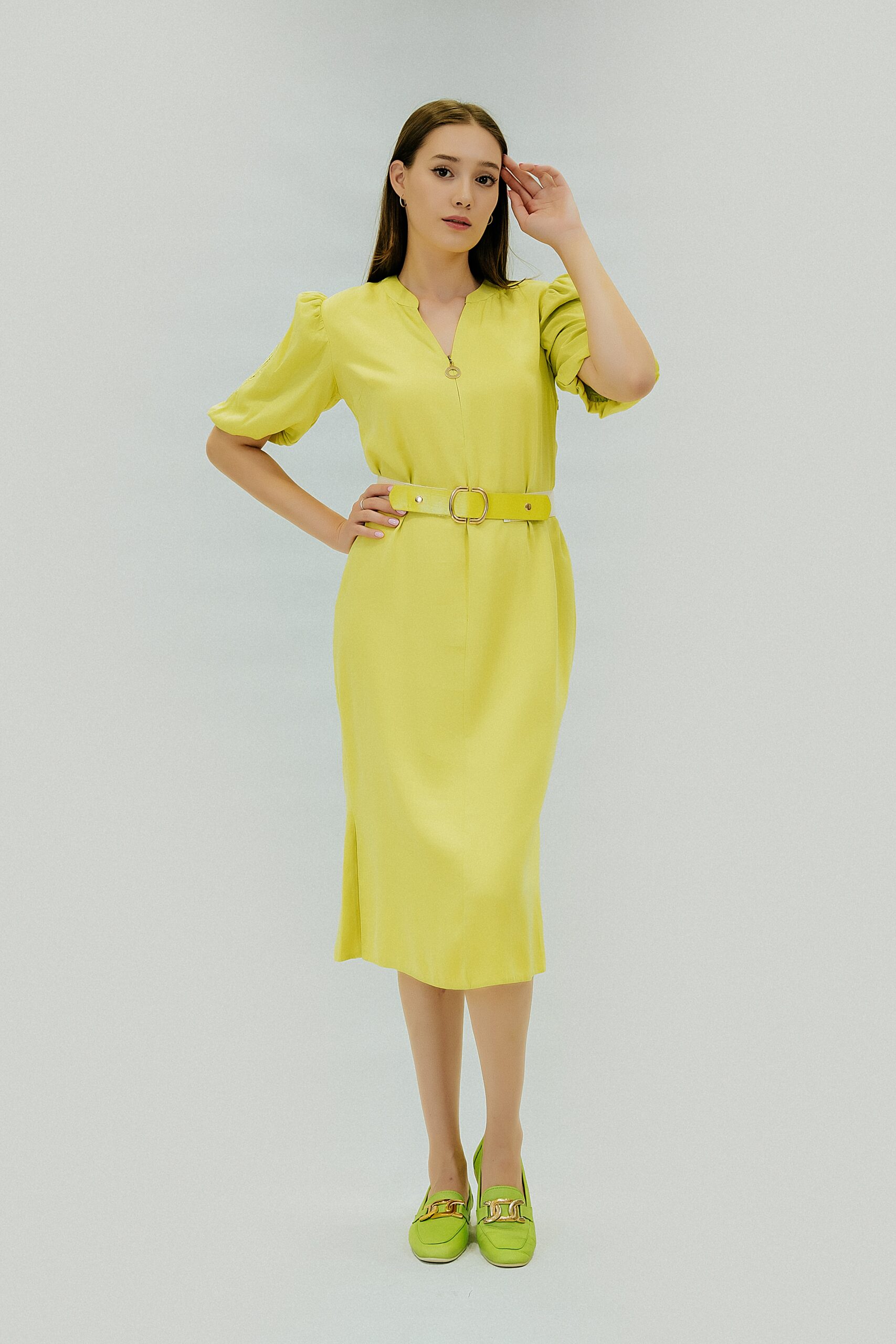 Платье PHARDI Стиль: Lady fit Состав: 100% tencel Длина: 112 см Длина рукава: 34 см Сезон: весна-лето Цвет: фисташковый Узор: однотонный Застежка: на молнии Страна производства: Турция Артикул: 242218650