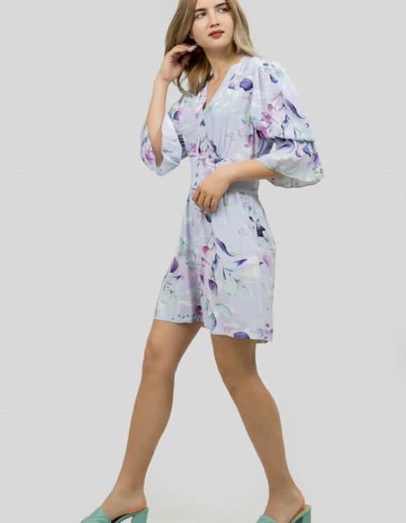 Комбинезон CHILIA Стиль: кэжуал Состав: 100% cotton Длина: 86 см Длина рукава: 50 см Сезон: весна-лето Цвет: лиловый Узор: цветы Застежка: молния Страна производства: Турция Артикул: 5853