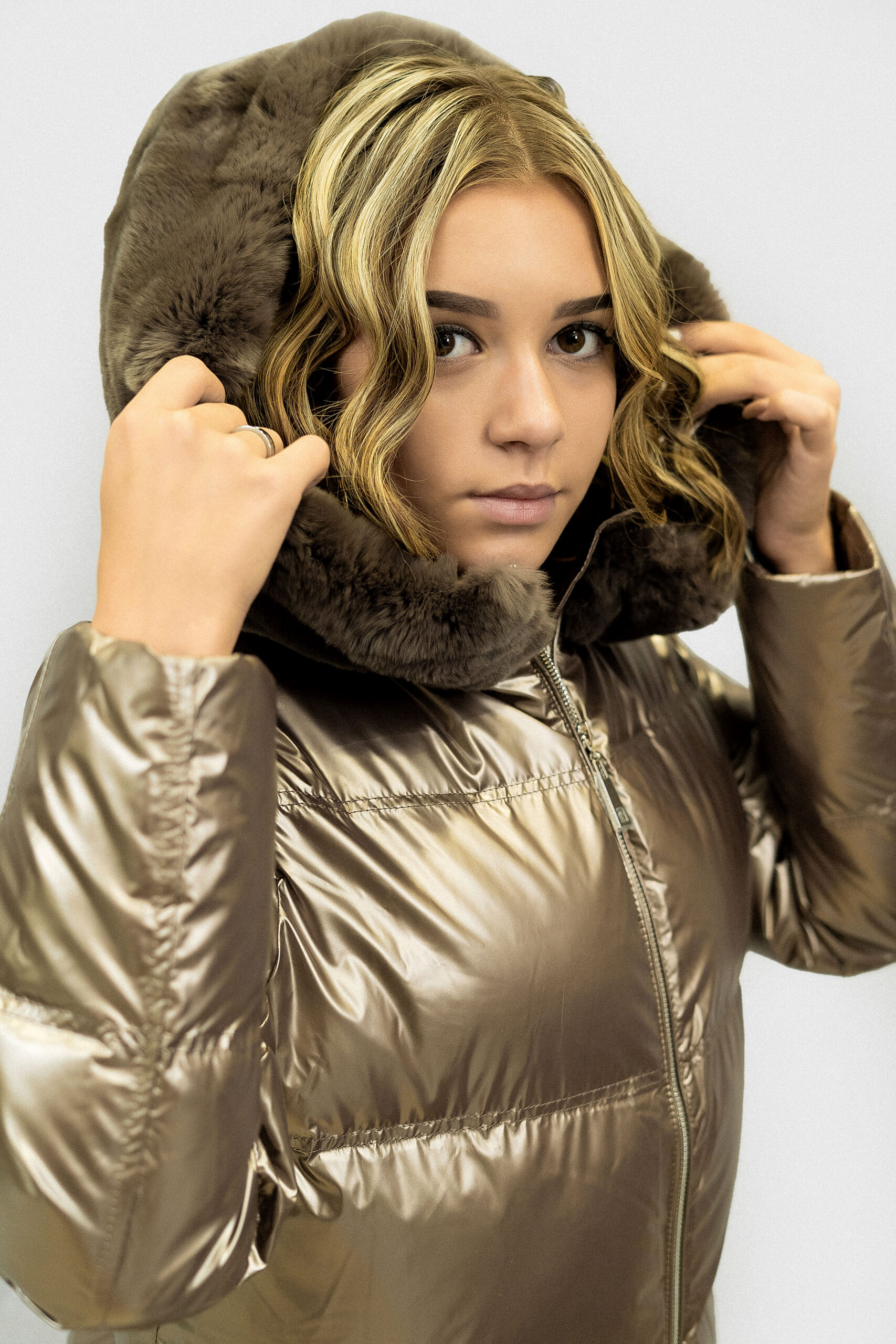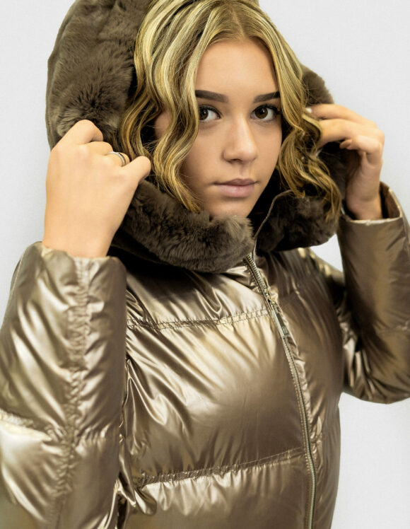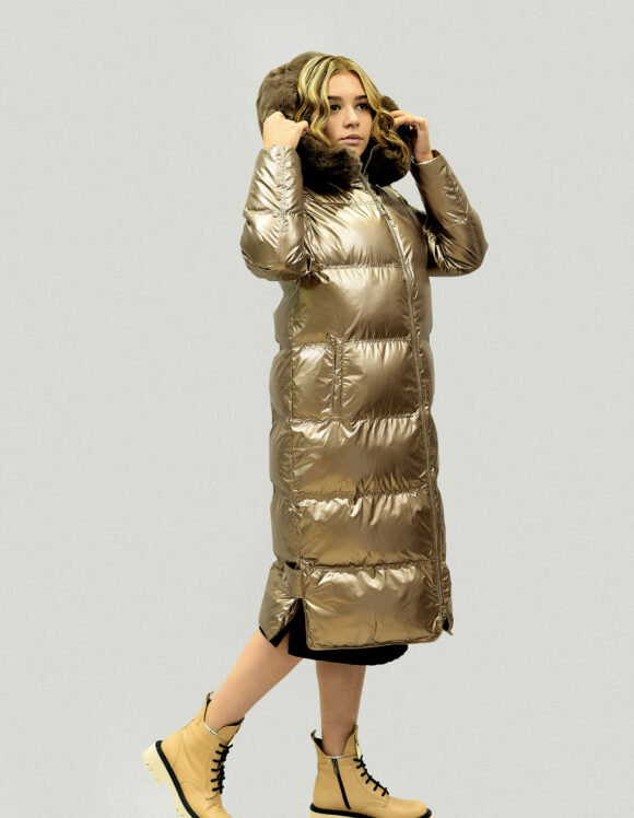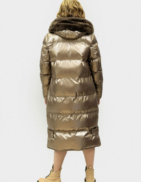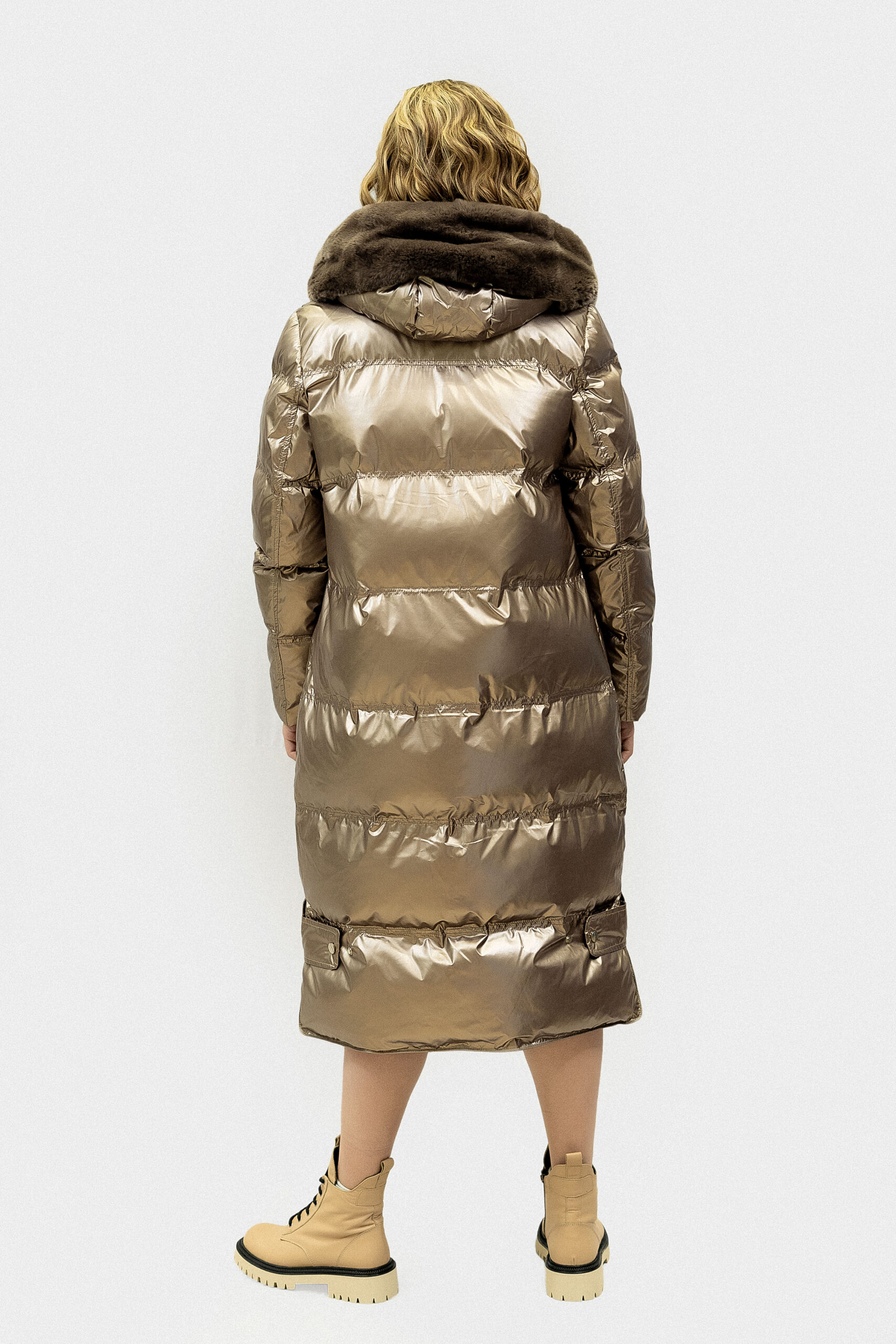 Пуховик SOLLO Состав верха: таслан Материал подклада: полиэстер Материал утеплителя: био-пух Мех отделки: кролик Длина рукава: 62 см Длина изделия: 104 см Сезон: осень-зима Цвет: бронза Страна производства: Турция Застежка: металлическая молния Артикул: 2118