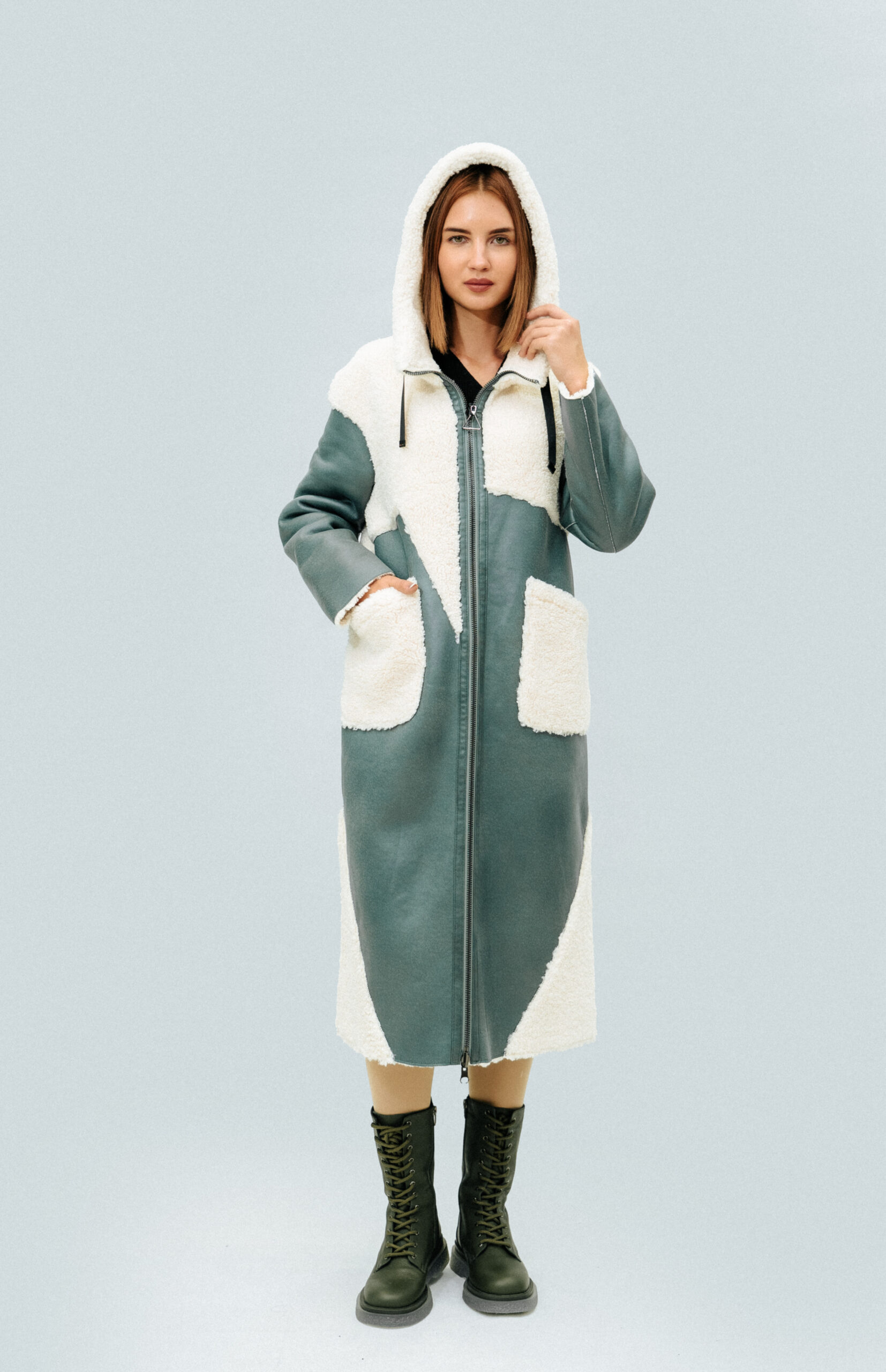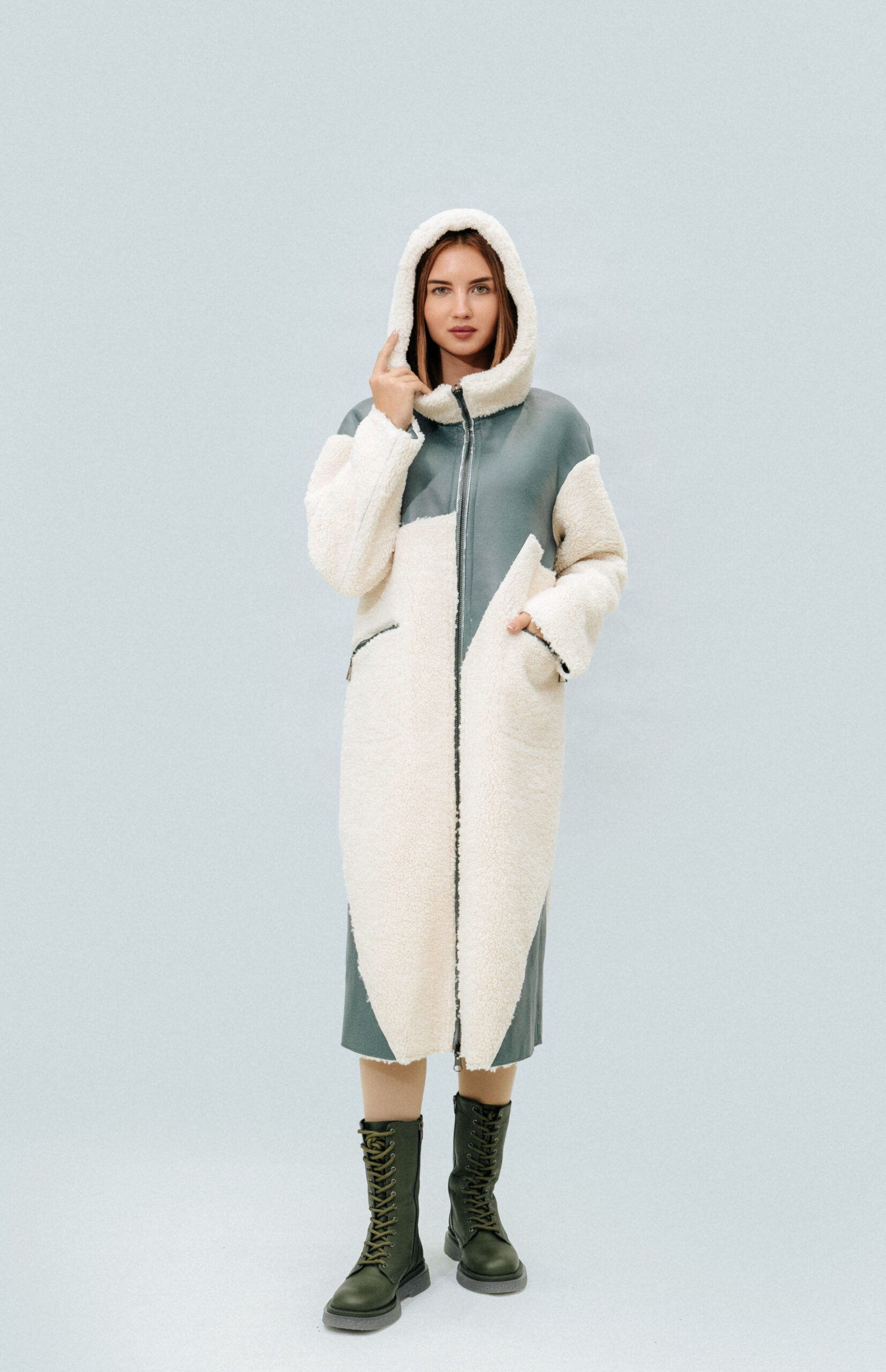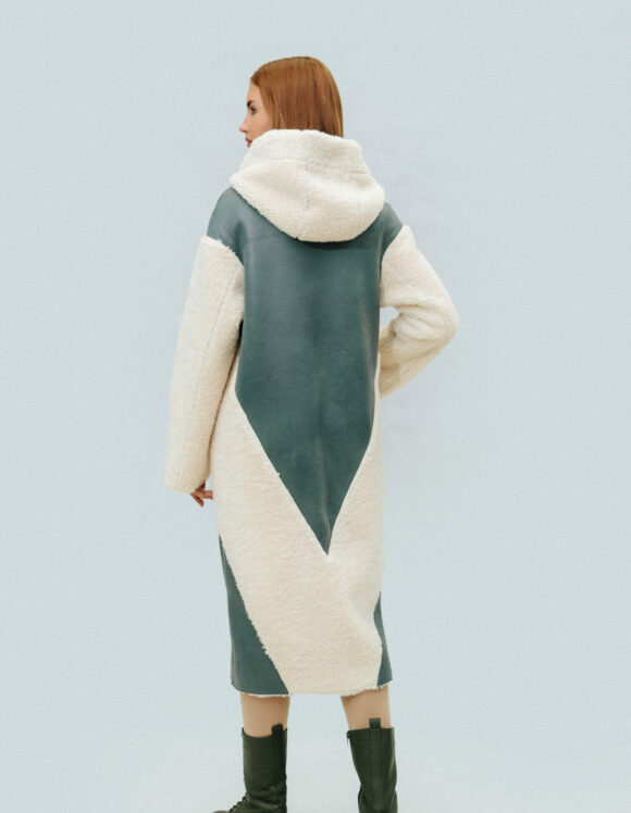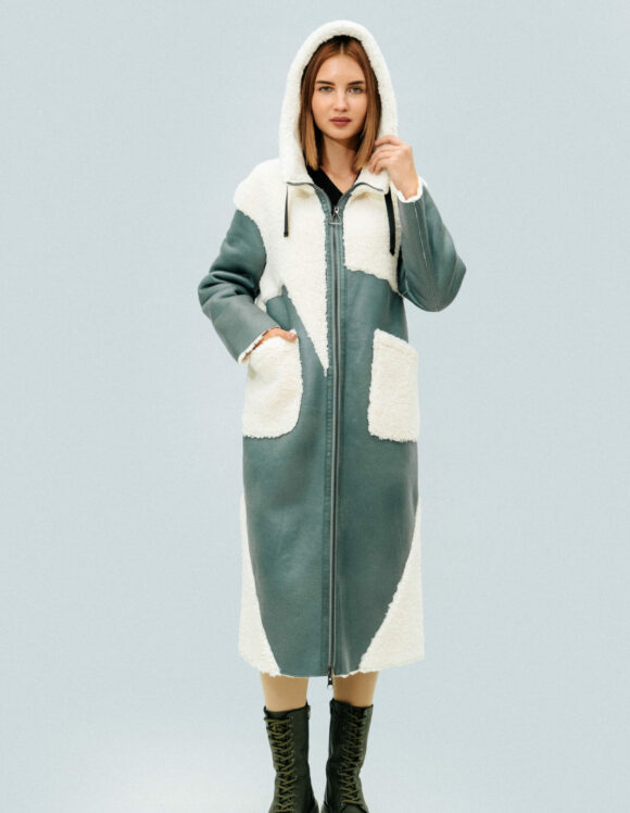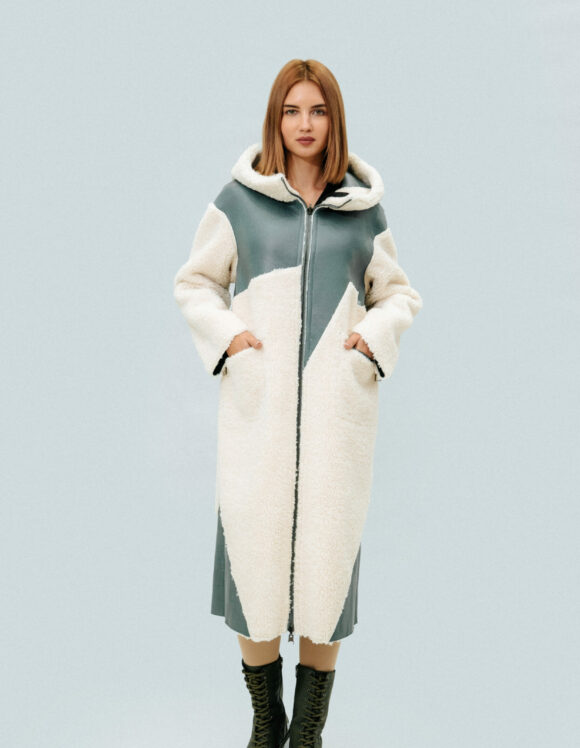 Двусторонняя шуба-тедди SOLLO Состав: овечья шерсть Длина рукава: 62 см Длина изделия: 110 см Сезон: осень-зима Цвет: ментоловый-бежевый Страна производства: Турция Застежка: металлическая молния Артикул: 2079 Цена: 2 027 000 Цена со скидкой: 1 824 000