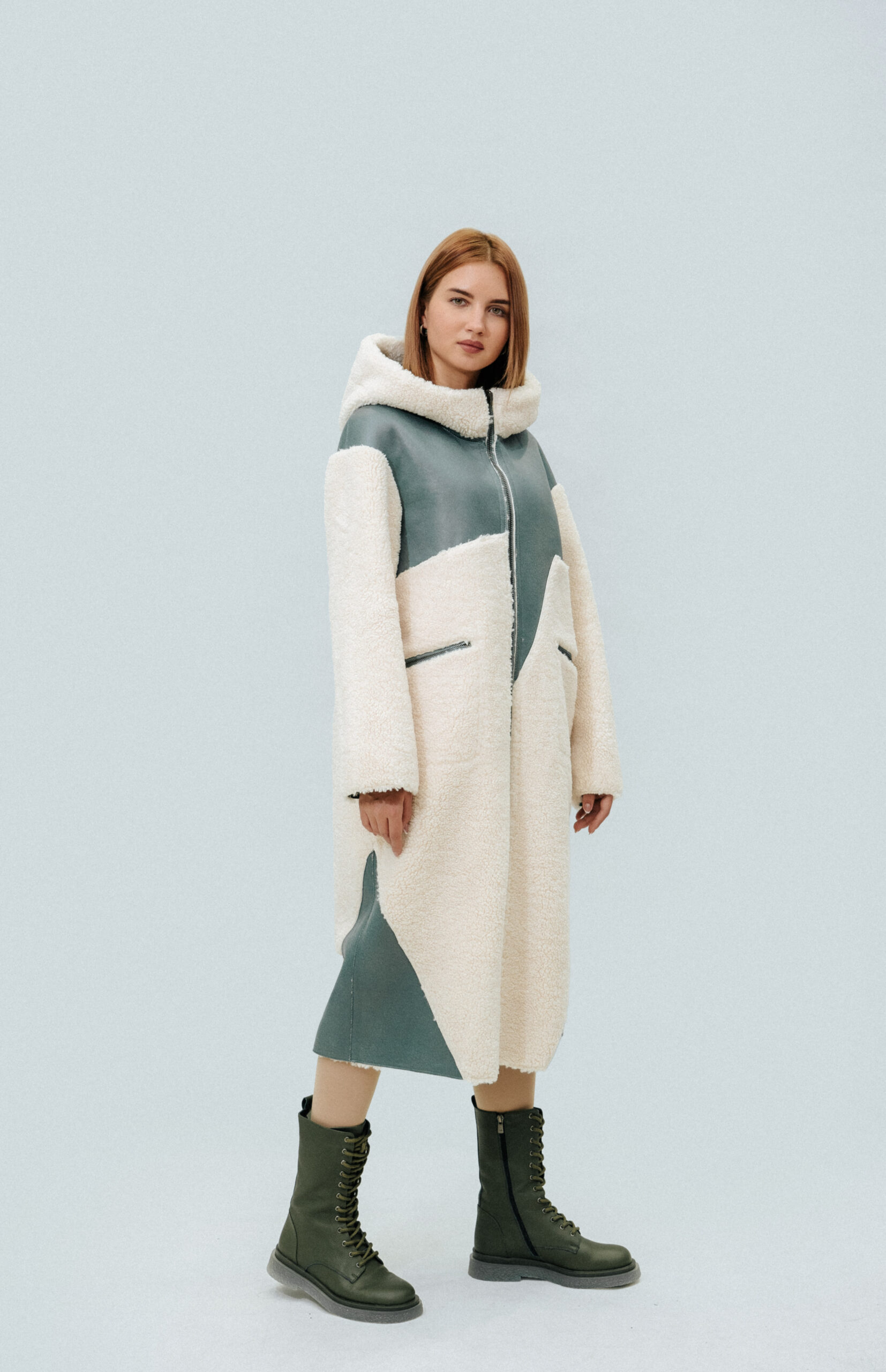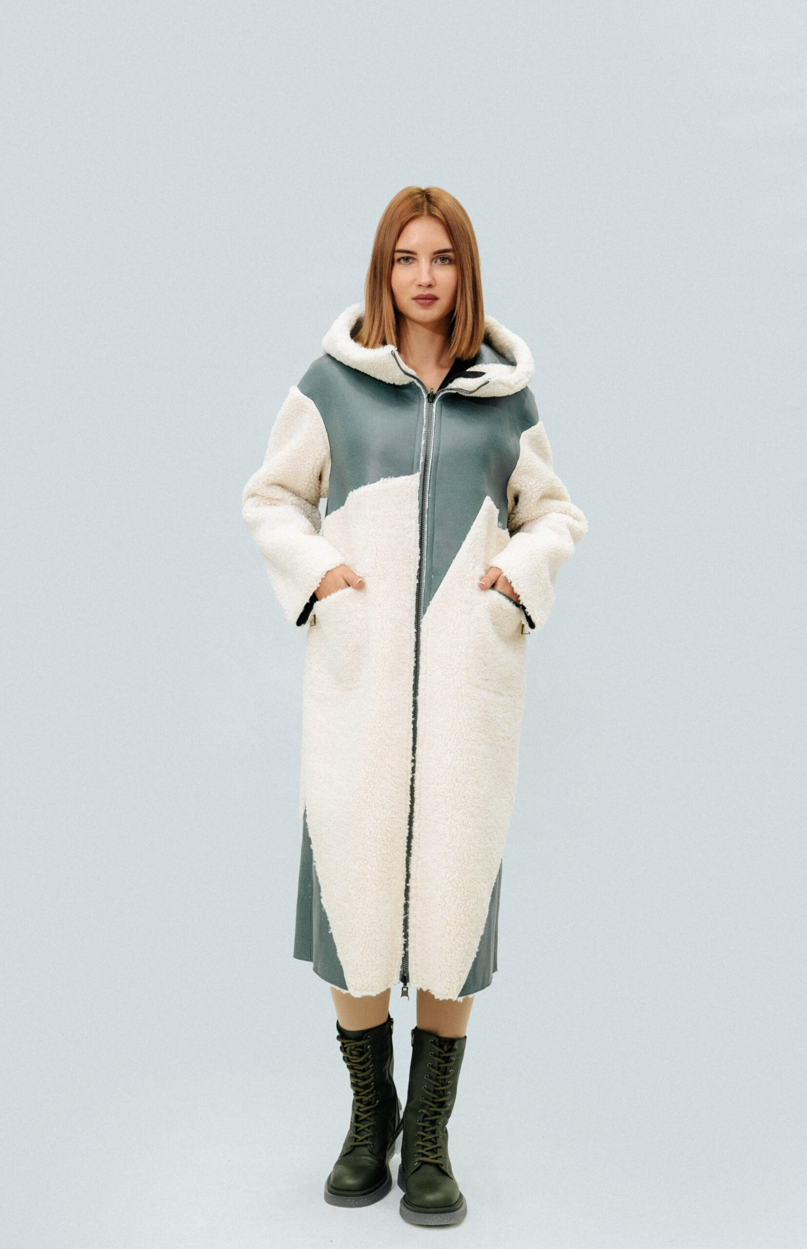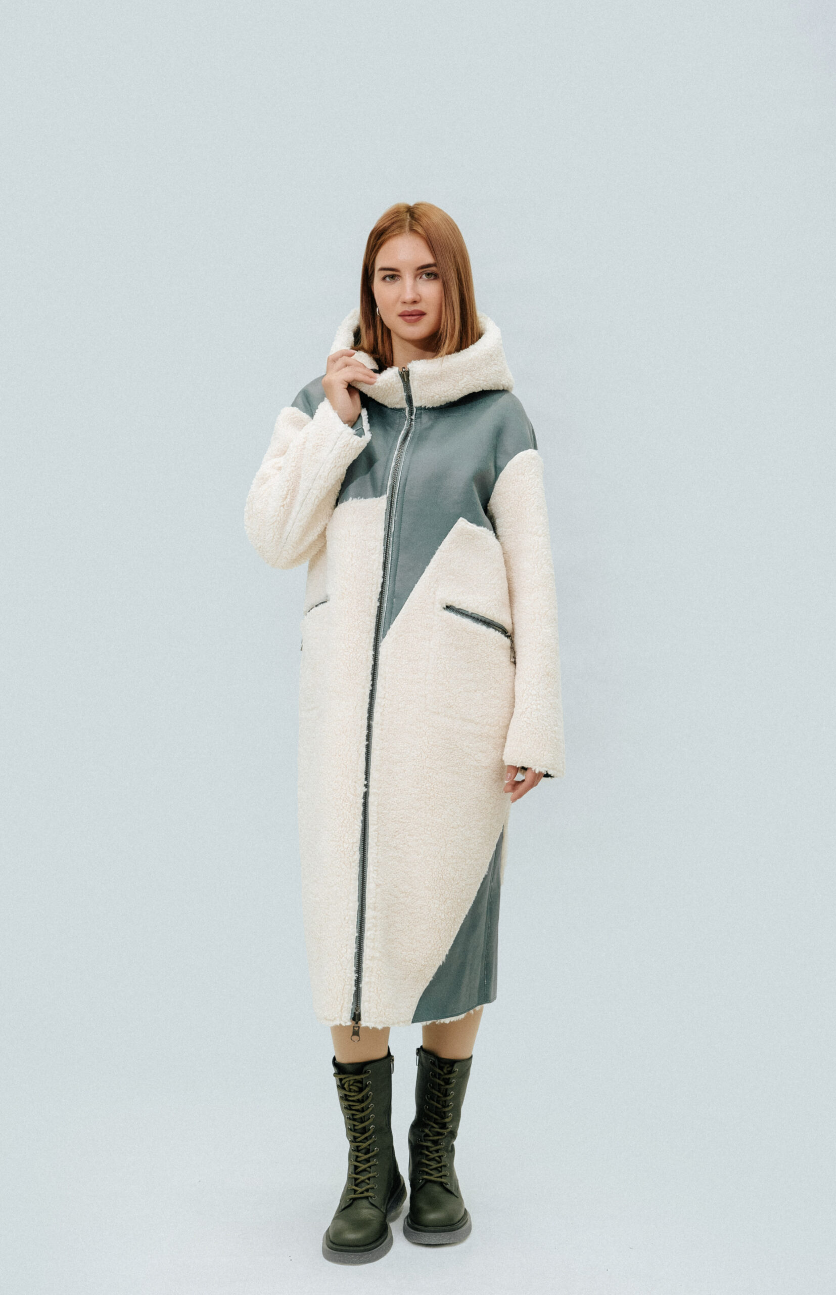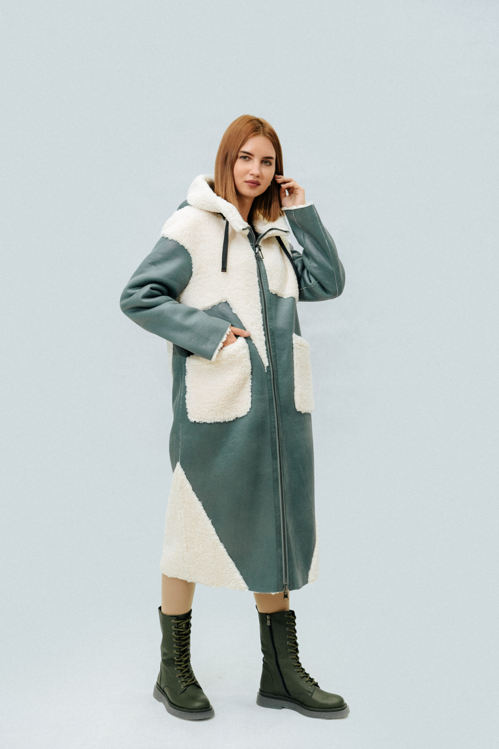Двусторонняя шуба-тедди SOLLO Состав: овечья шерсть Длина рукава: 62 см Длина изделия: 110 см Сезон: осень-зима Цвет: ментоловый-бежевый Страна производства: Турция Застежка: металлическая молния Артикул: 2079 Цена: 2 027 000 Цена со скидкой: 1 824 000