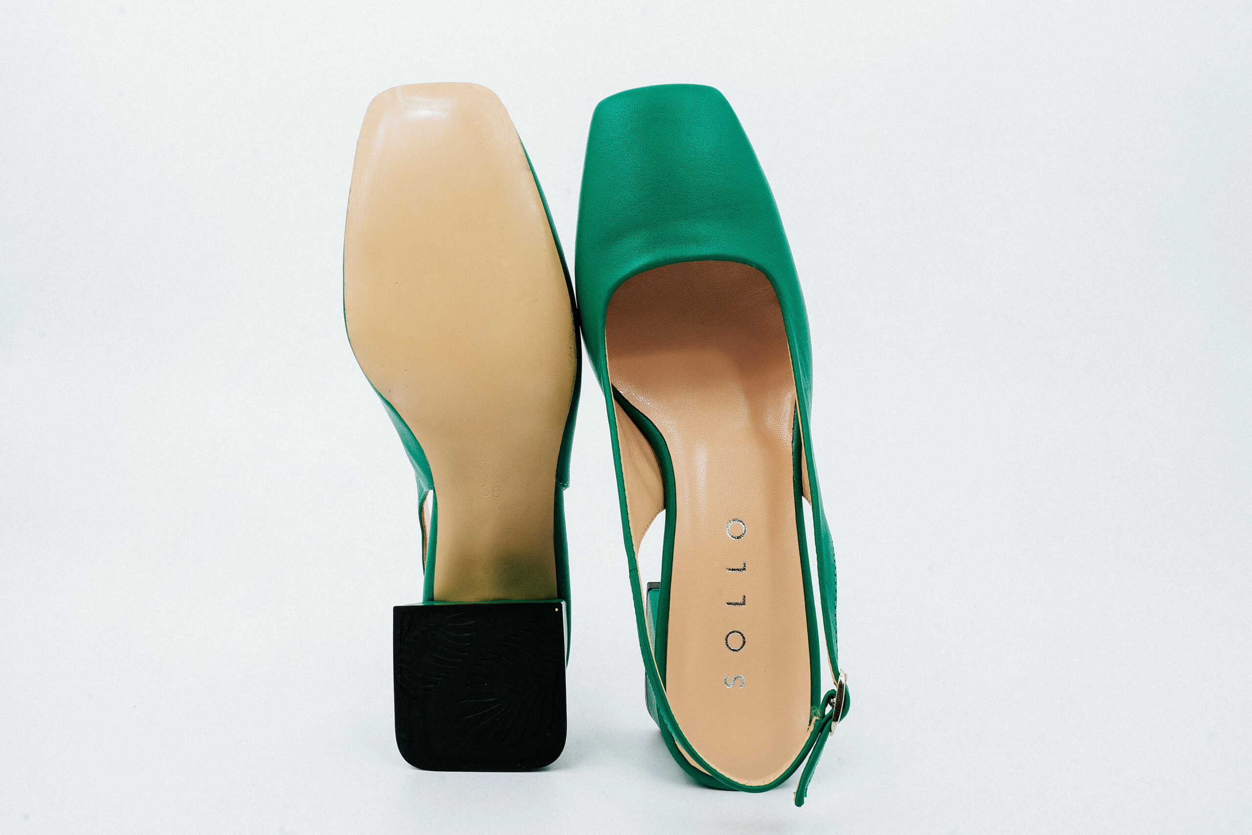 Слингбеки SOLLO Материал верха: кожа Внутренний материал: кожа Материал подошвы: термополиуретан Высота каблука: 5,5 см Сезон: весна-лето Цвет: зеленый Страна производства: Турция Артикул: 652