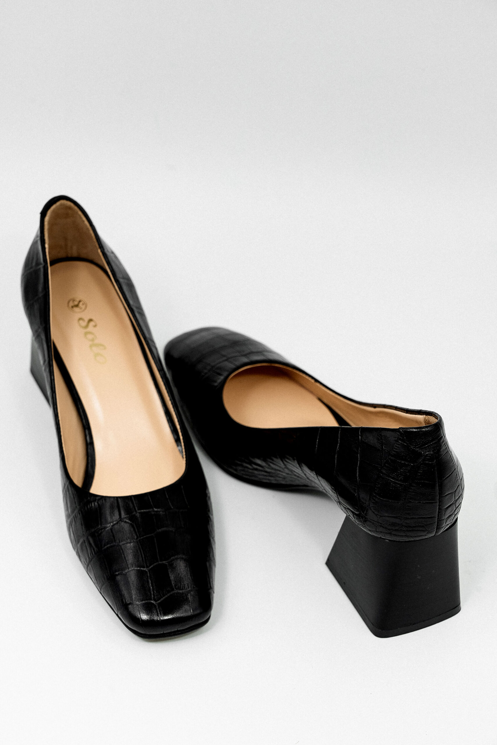 CompareТУФЛИ SOLLO Материал верха: кожа Внутренний материал: кожа с тиснением под рептилию Материал подошвы: термополиуретан Высота каблука: 6 см Сезон: демисезонные Цвет: черный Страна производства: Турция Артикул: 556