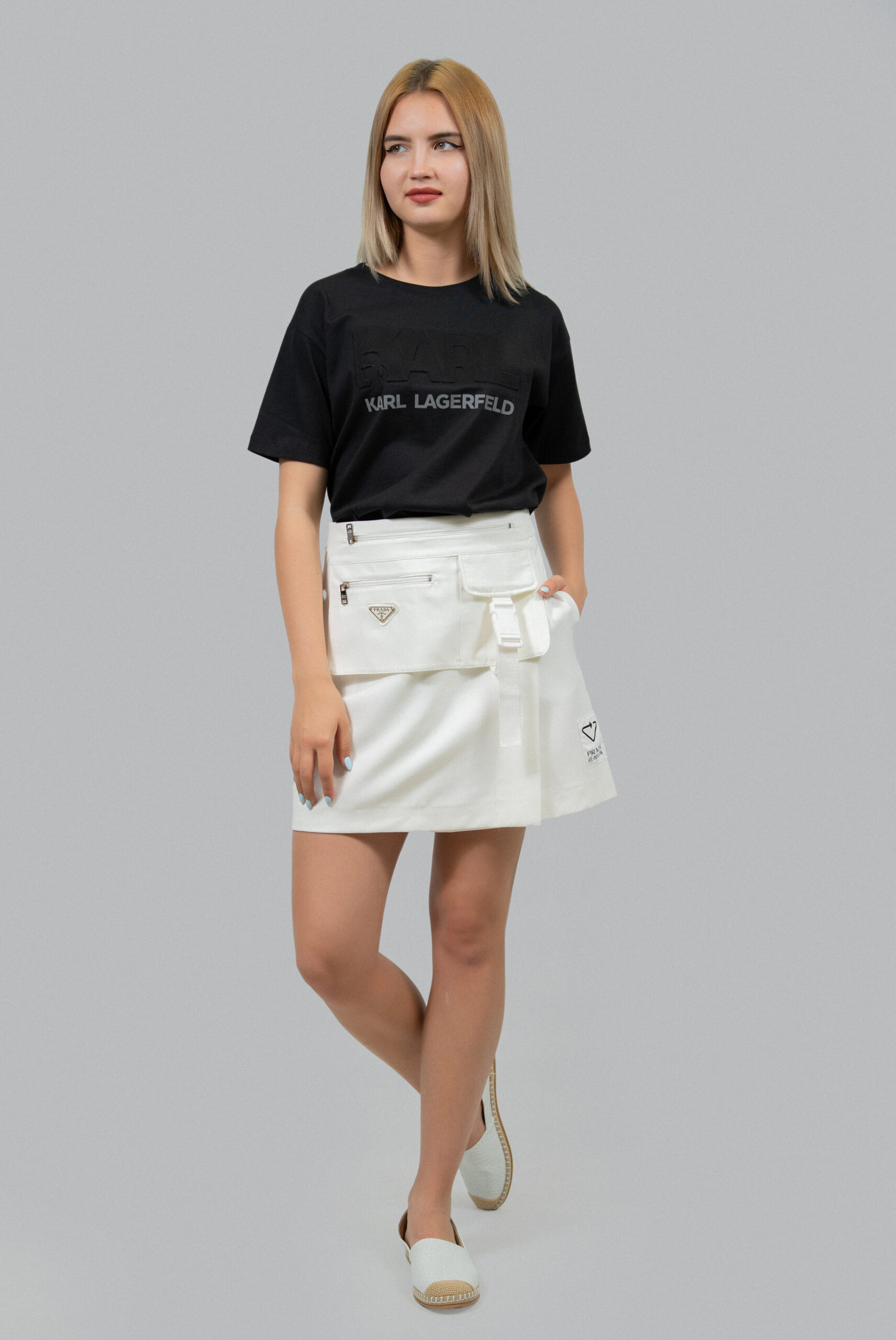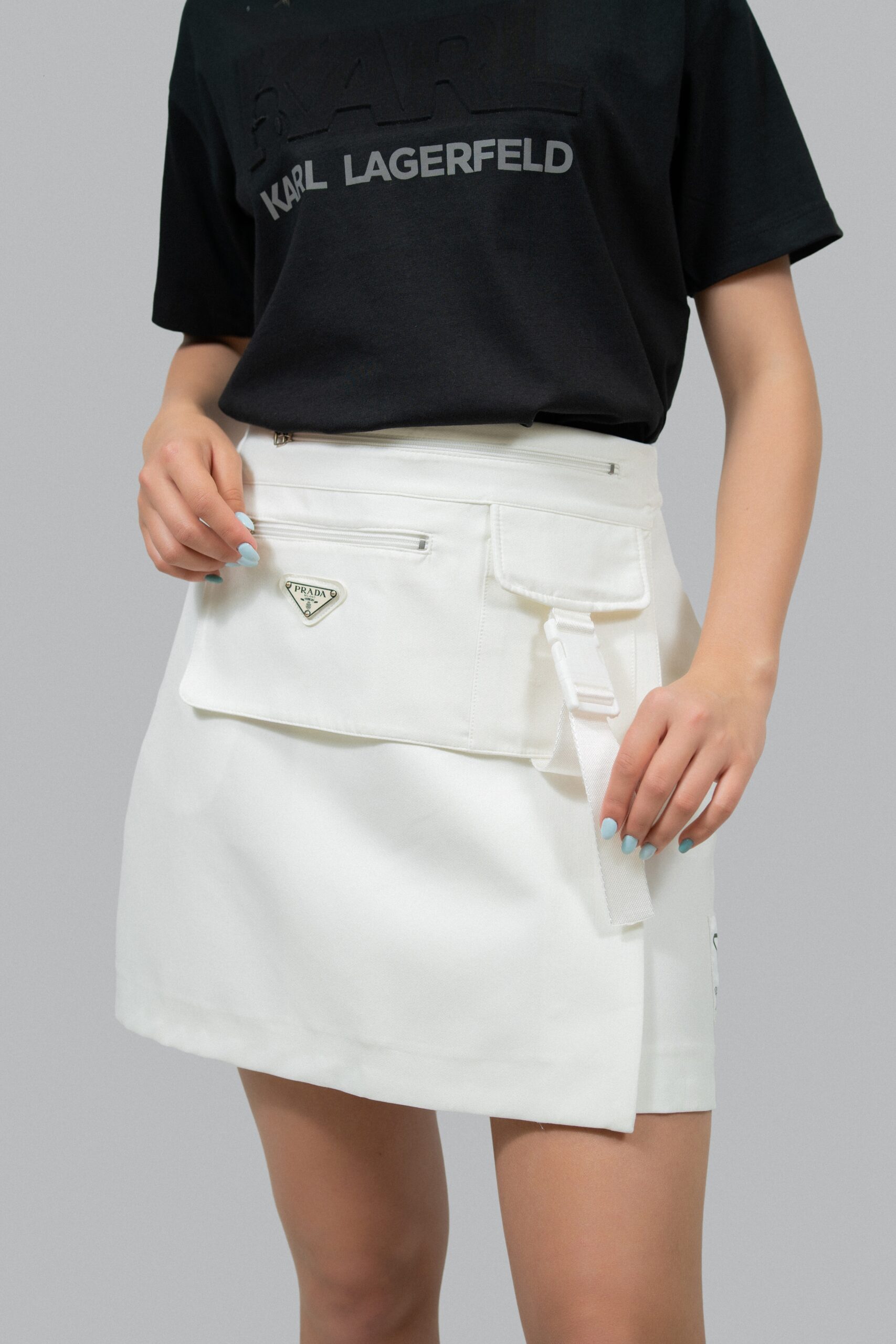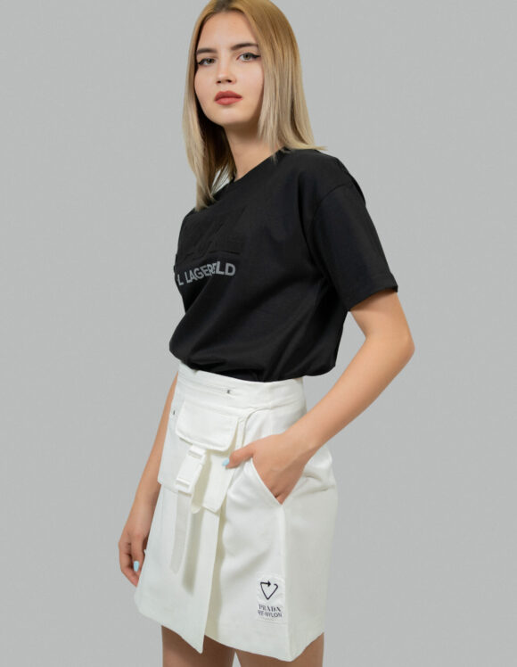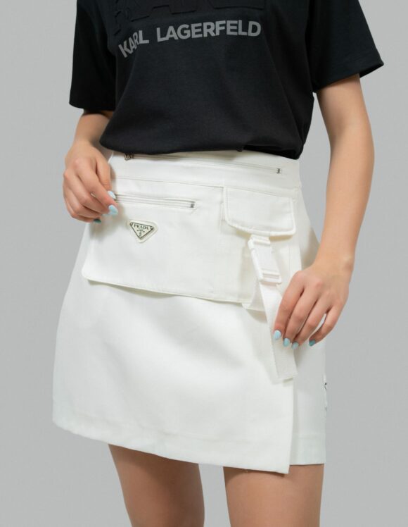 Юбка PRADA Стиль: кэжуал Состав: 65% cotton, 35% polyamide Длина юбки: 42 см Сезон: Весна-лето Цвет: белый Узор: Однотонный Застежка: молния Страна производства: Турция Артикул: 90061