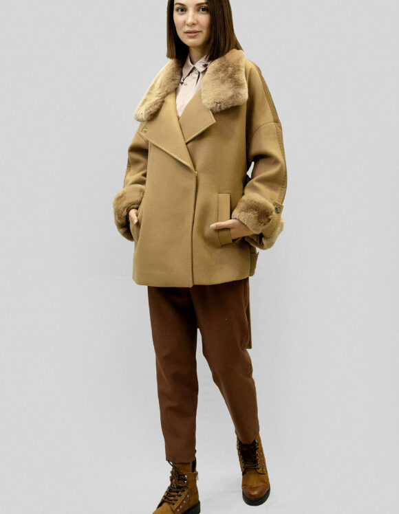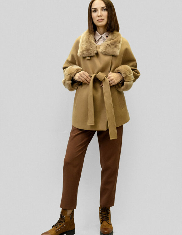 Полупальто ESMERALDA Состав верха: ткань: кашемир и дюспон Мех отделки: кролик Материал утепления: тонкая прослойка био-пуха Длина рукава от горловины: 65 см Длина: 68 см Сезон: демисезонный Цвет: бежевый Страна производства: Турция Застежка: металлические кнопки Артикул: 9600
