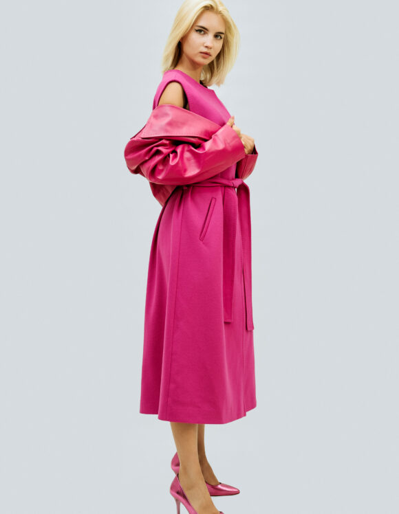 Пальто ESMERALDA Состав: шерсть Материал подклада: полиэстер Мех отделки: песец Длина изделия:121 см Длина кожаной куртки: 39 см Длина рукава: 56 см Сезон: осень-зима Цвет: Малиновый Страна производства: Турция Застежка: кнопки Артикул: 9485