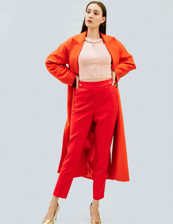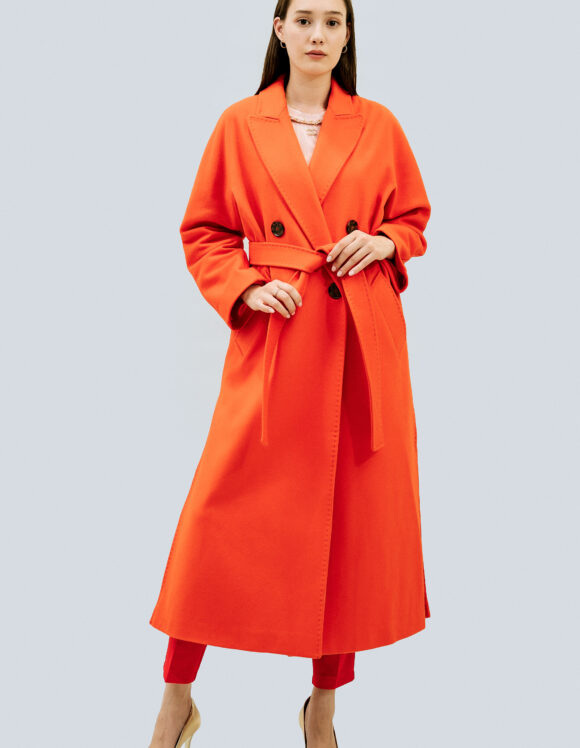 Пальто ESMERALDA Состав: шерсть Материал подклада: полиэстер Длина изделия:128 см Длина рукава: 68 см Сезон: осень-зима Цвет: оранжевый Страна производства: Турция Застежка: пуговицы Артикул: 9643