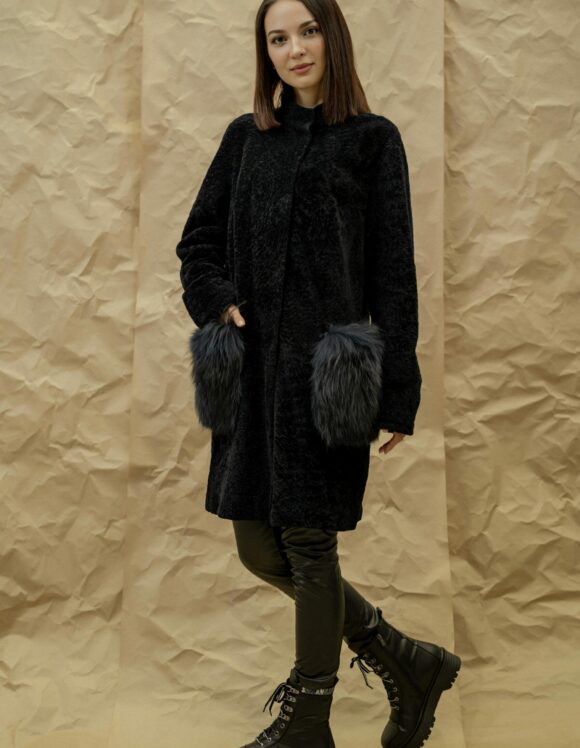 Шуба GUN MOD Состав верха: овчина Материал подклада: полиэстер Мех отделки: степная лисица Длина: 94 см Длина рукава от горловины: 82 см Сезон: осень-зима Цвет: темно-синий Страна производства: Турция Застежка: металлические кнопки