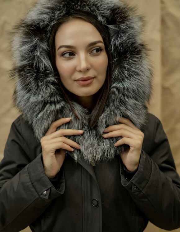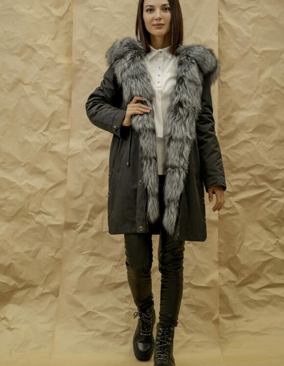 Парка SOLLO Состав верха: ткань: плотная плащевка с водоотталкивающим мембранным покрытием Материал подклада: верблюжья шерсть Мех отделки: лиса-чернобурка Длина: 83 см Длина рукава: 58 см Сезон: осень-зима Цвет: серый Страна производства: Турция Застежка: металлическая молния, металлические кнопки