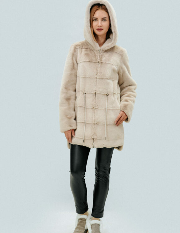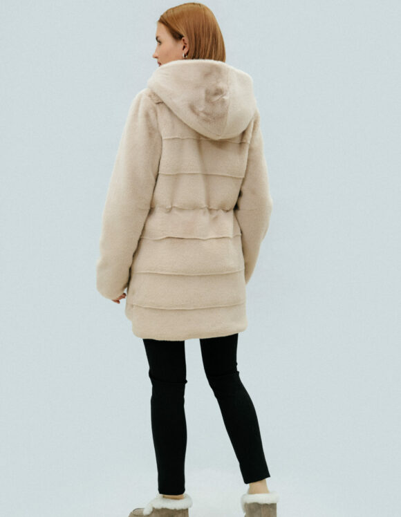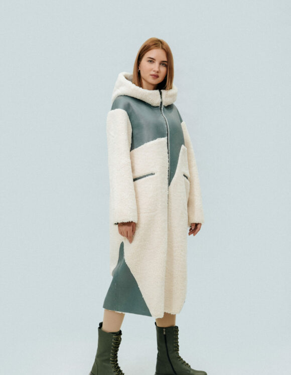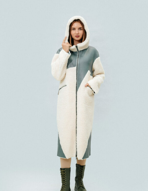 Двусторонняя шуба-тедди SOLLO Состав: овечья шерсть Длина рукава: 62 см Длина изделия: 110 см Сезон: осень-зима Цвет: ментоловый-бежевый Страна производства: Турция Застежка: металлическая молния Артикул: 2079 Цена: 2 027 000 Цена со скидкой: 1 824 000
