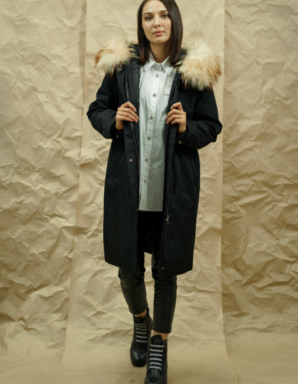 Парка SOLLO Состав верха: ткань: плотная плащевка с водоотталкивающим мембранным покрытием Материал подклада: верблюжья шерсть Мех отделки: степная лисица Длина: 93 см Длина рукава: 60 см Сезон: осень-зима Цвет: черный Страна производства: Турция Застежка: металлическая молния, металлические кнопки