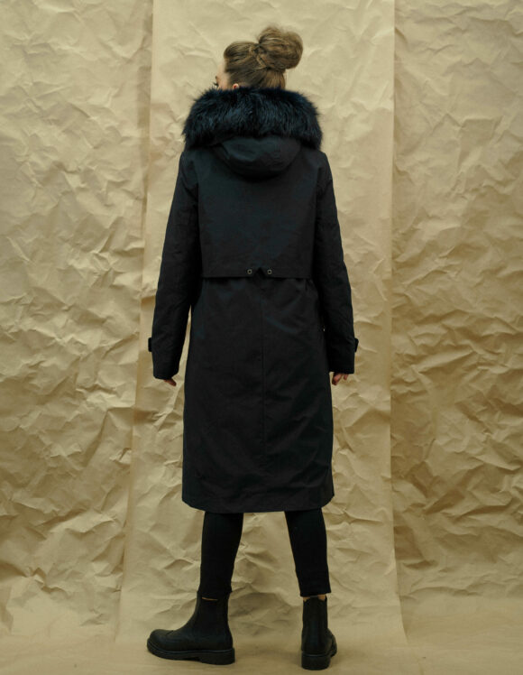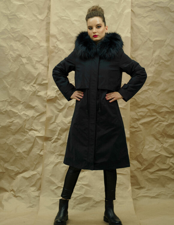 Парка SOLLO Состав верха: ткань: плотная плащевка с водоотталкивающим мембранным покрытием Материал подклада: верблюжья шерсть Мех отделки: енот Длина: 100 см Длина рукава: 56 см Сезон: осень-зима Цвет: темно-синий Страна производства: Турция Застежка: металлическая молния, металлические кнопки