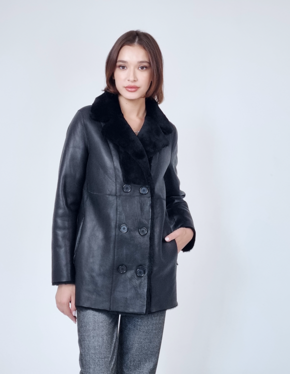Двусторонняя дубленка MANETTI Состав: 100% овечина Длина изделия: 92 см Длина рукава от горловины: 60 см Сезон: осень-зима Цвет: черный Страна производства: Турция Застежка: пуговицы Артикул: 526