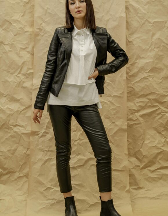Пиджак MANETTI Состав: 100% овечья кожа Материал подклада: полиэстер Утеплитель: нет Длина изделия: 72 см Длина рукава от горловины: 69 см Сезон: демисезонный Цвет: черный Страна производства: Турция Застежка: пуговицы Артикул: 452